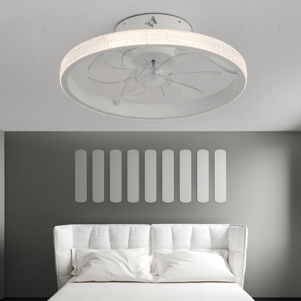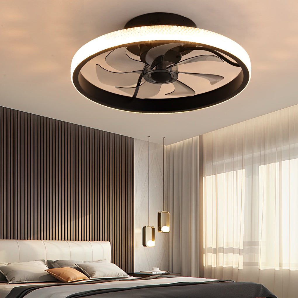Modern 6-Speed Bladeless Ceiling Fan with Dimmable LED Light – Round