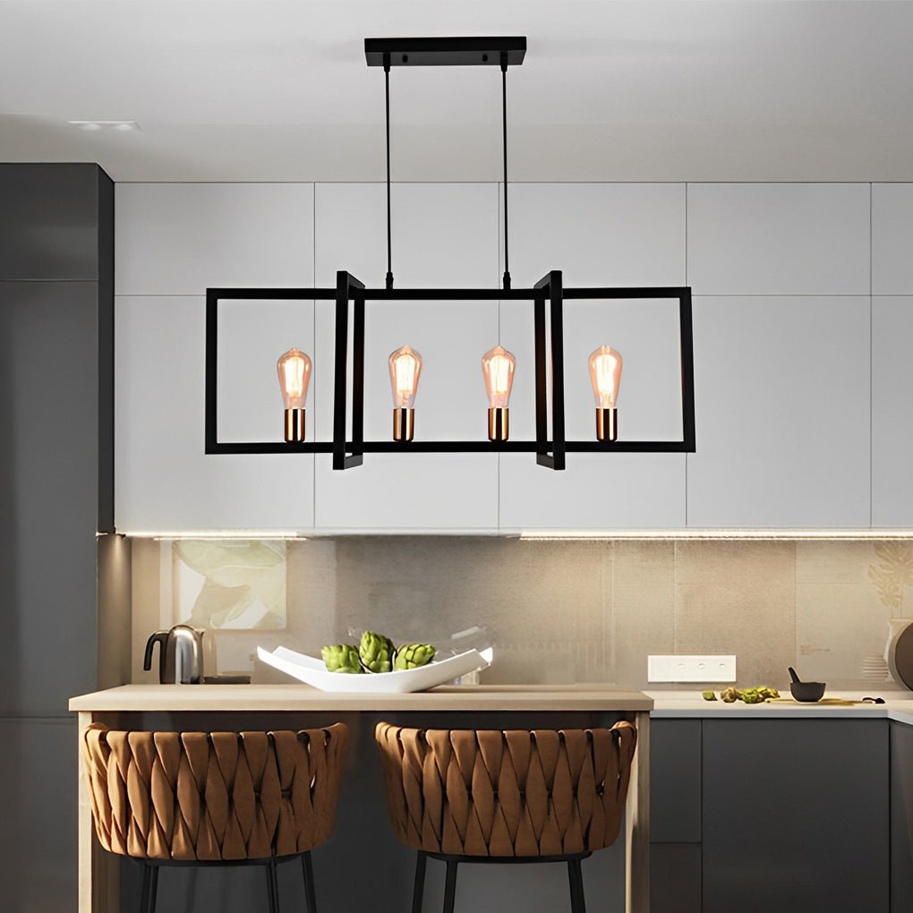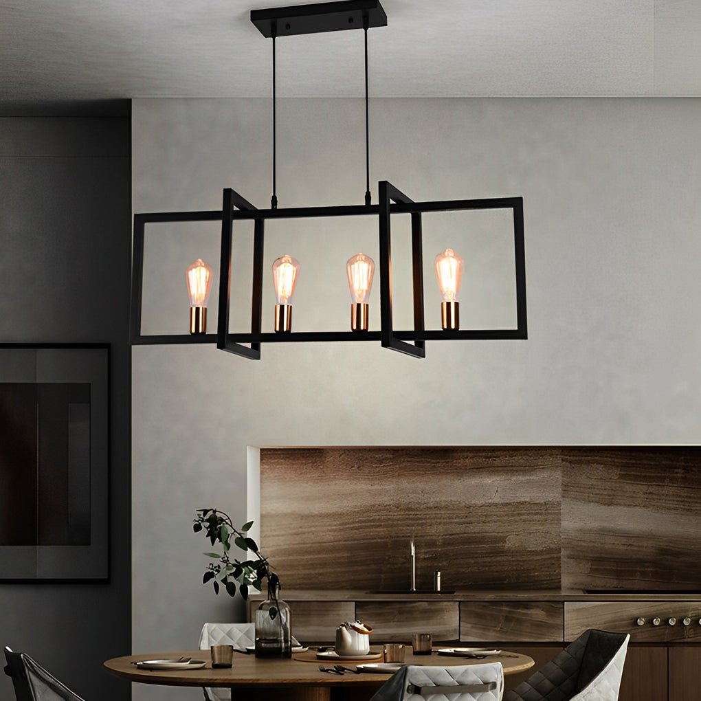 Rectangular Frame Design Iron Black Industrial Chandelier Pendant Lights