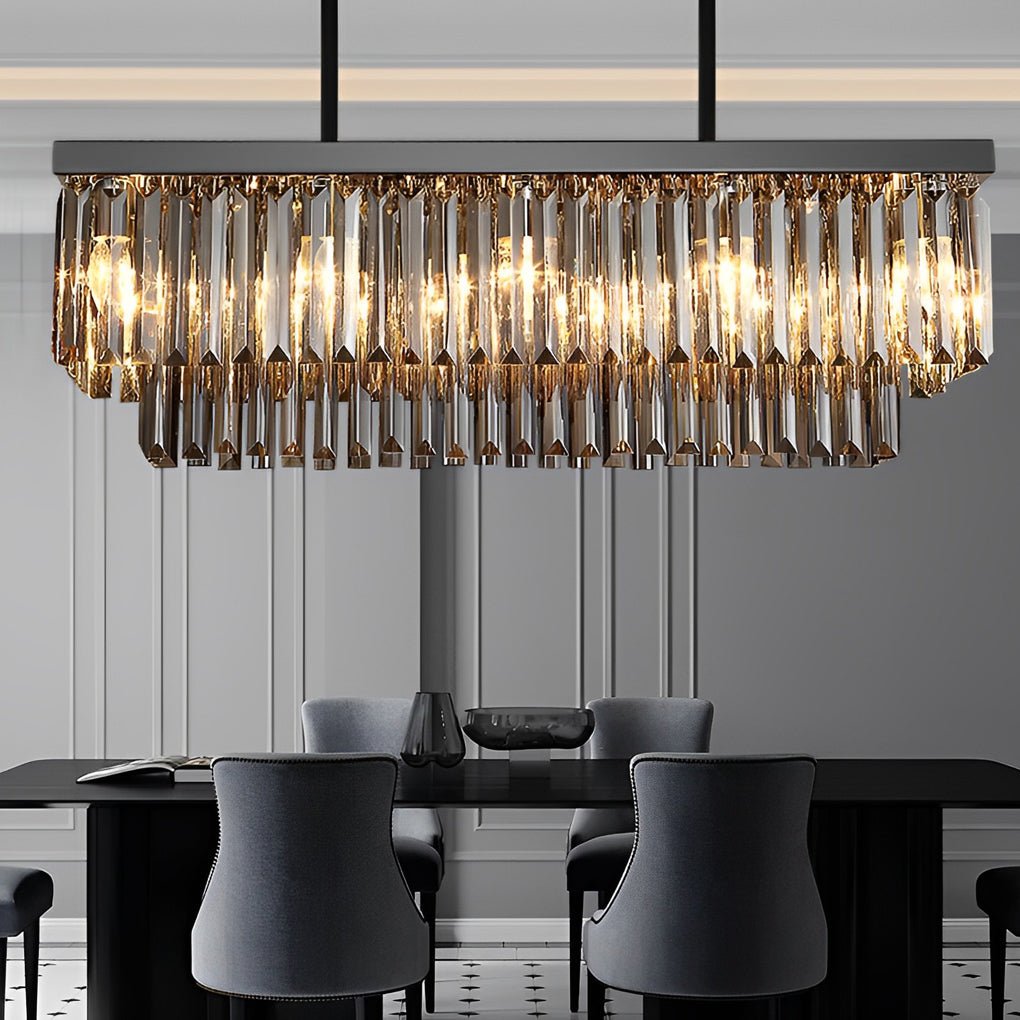 Rectangular Crystal LED 3 Step Dimming Smoke Gray Modern Chandelier