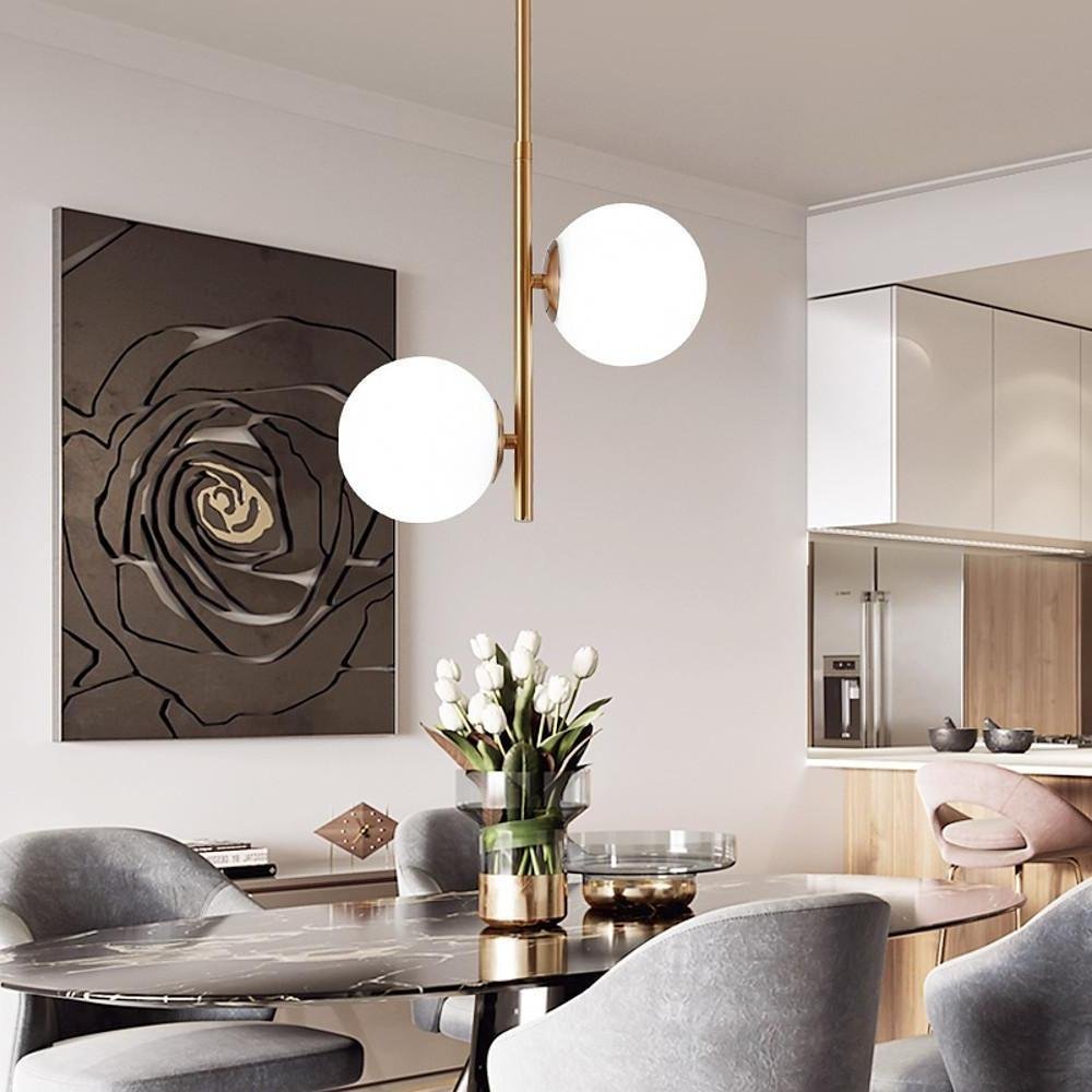 2 Lights Ball-shaped Electroplated Glass Metal LED Modern Pendant Lights