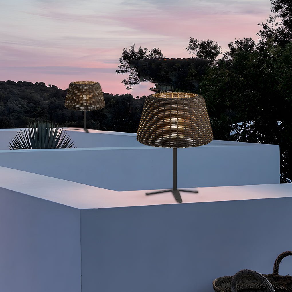 Outdoor 13.77 inch Wicker Shade Rustic Iron Table Lamp