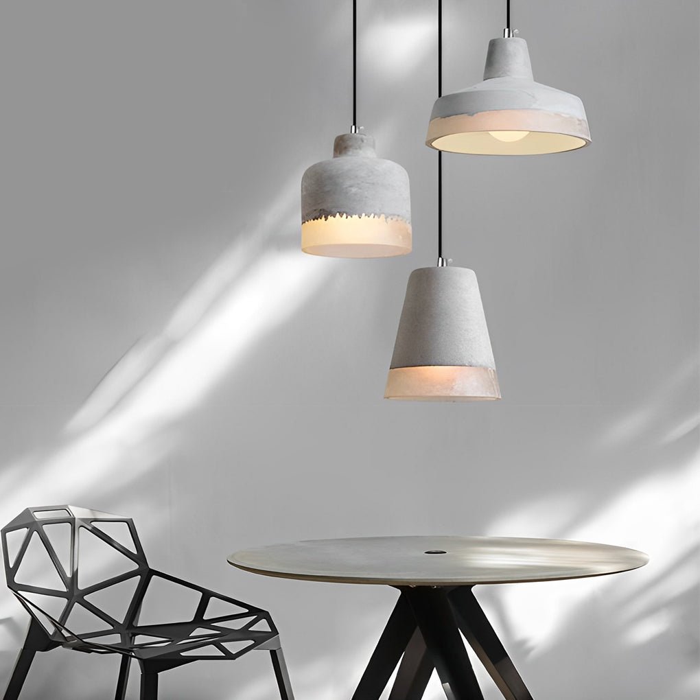 Inverted Cup Design Industrial Pendant Lighting LED Glass Metal Cement Ceiling Light