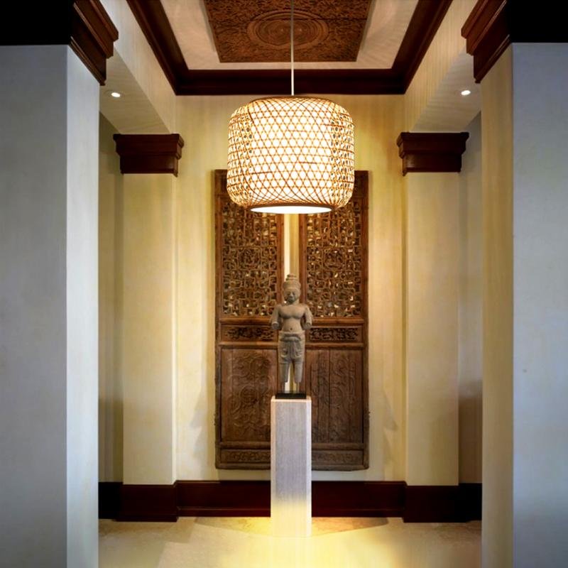 Sleek Modern-Looking Cylindrical Bamboo Pendant Light Entryway Hallway Lighting