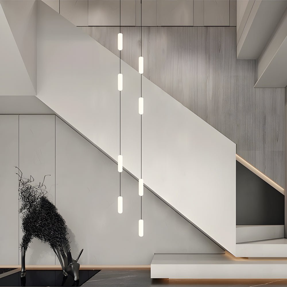 White Long Tube Multi Light Staircase Chandelier