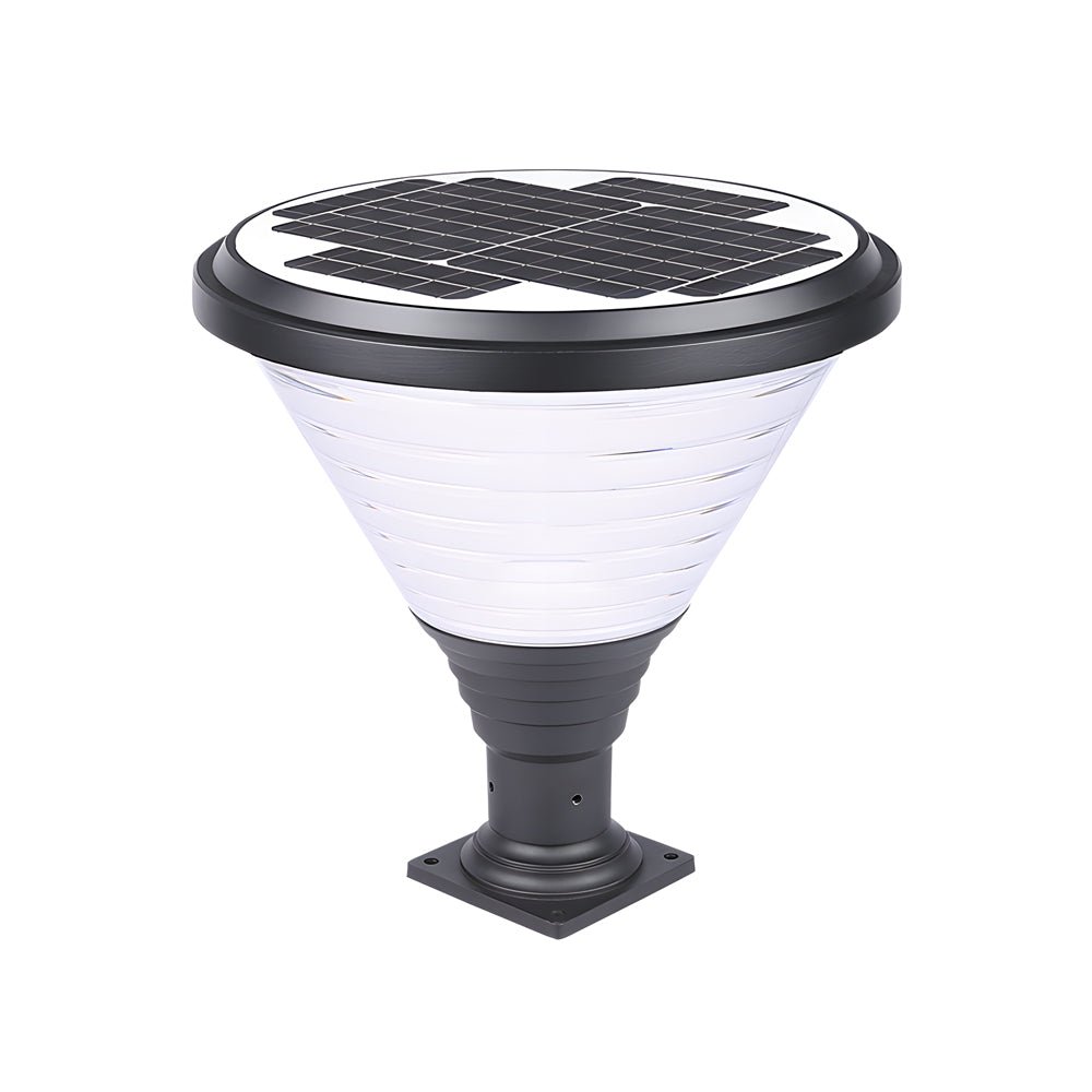 Illuminate outdoor spaces with the Minihouzz Solar Pier Mount Post Light, a contemporary LED fixture designed for modern aesthetics and efficient performance. This solar-powered light features a durable black aluminum finish complemented by clear PC lampshades, providing soft, diffused illumination.
