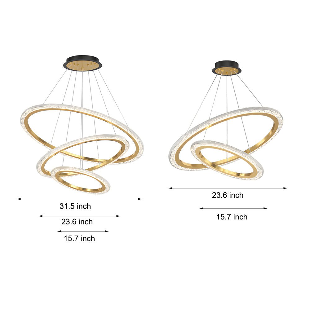 - This ring chandelier features a robust construction from metal and acrylic materials, ensuring durability, rust resistance, and high light transmittance. The integrated light source offers three color temperatures, designed to provide flicker-free and glare-free illumination for enhanced visual comfort. This lighting fixture is also designed for ease of cleaning and offers a long operational lifespan.