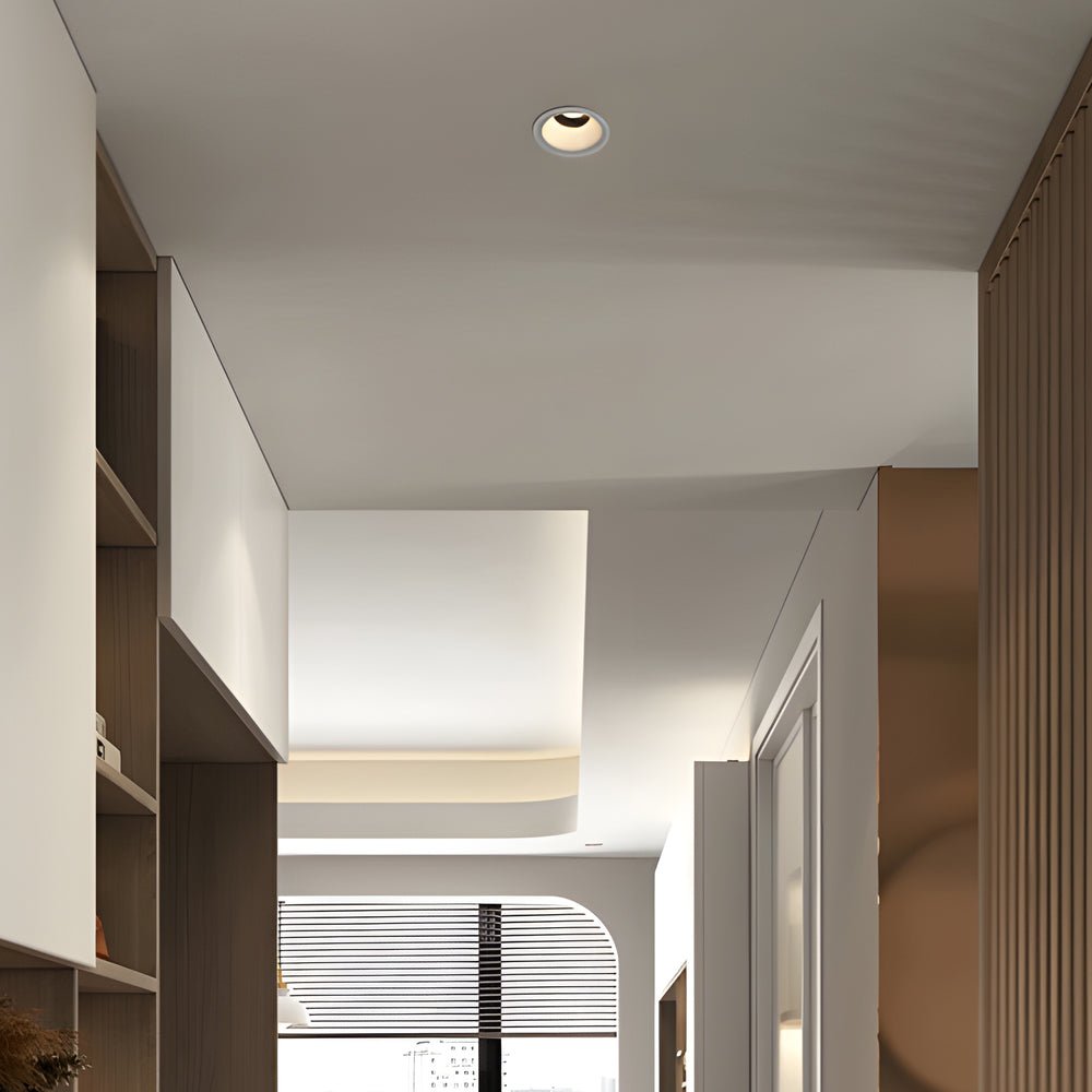 - Designed for energy-saving, this round white LED recessed ceiling light offers a built-in non-dimmable 10-watt LED light. Features four different color temperature options: 3000K Warm Light, 3500K Warm White Light, 4000K Neutral Light, and 5000K White Light. Its aluminum structure features a deep tube anti-glare design, allowing for versatile installation and the ability to create wall-washing lighting effects.