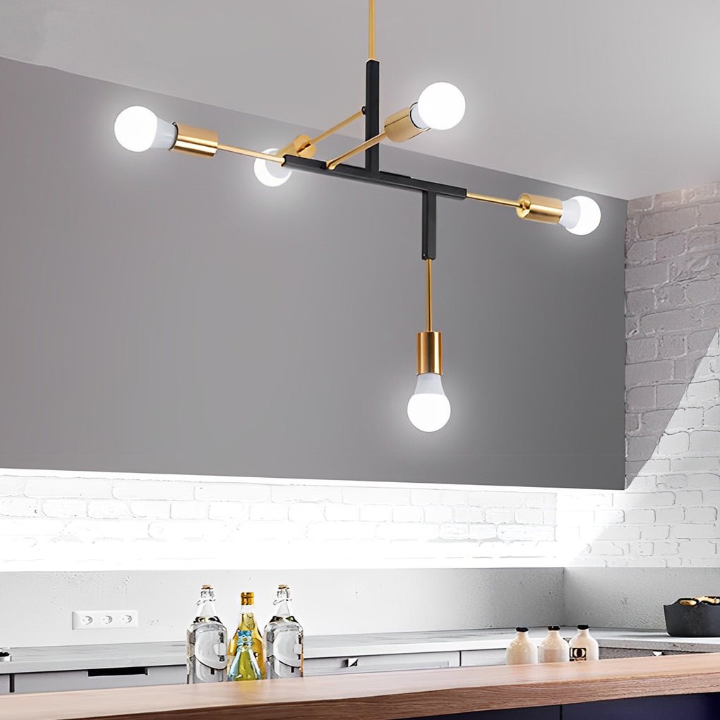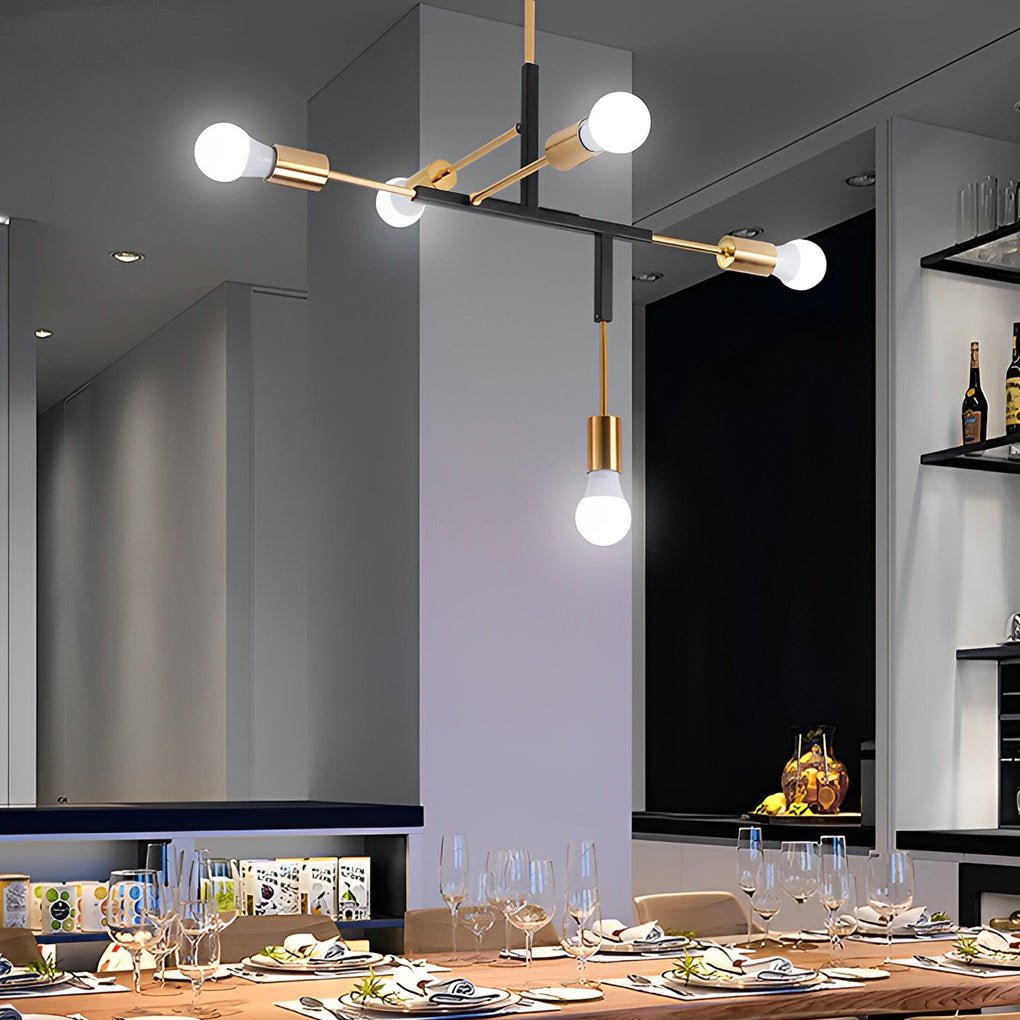 This modern chandelier features an irregular shape and multi-angle vertical design, offering a distinctive aesthetic. The design provides a unique style suitable for various home interiors.