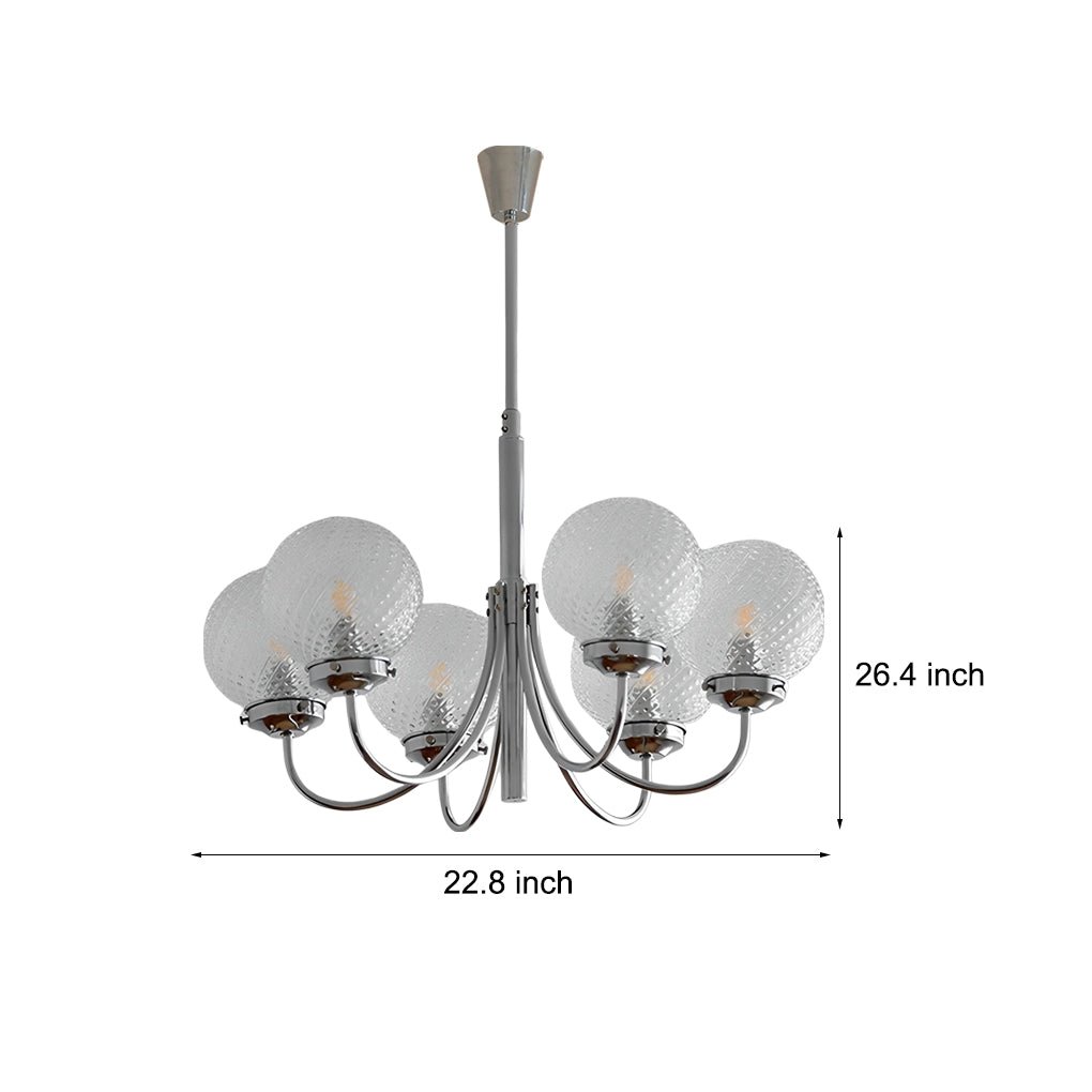This chandelier showcases a postmodern minimalist design. Beyond its primary function as a light source, it serves as a distinctive decorative element. The electroplated hardware body offers a sturdy, corrosion-resistant construction with a refined texture. The glass lampshade features a unique three-dimensional dotted design, enhancing its visual appeal.
