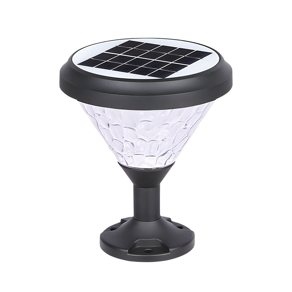 - Water-rippled PC lampshade creates exquisite texture and character for a modern outdoor solar LED post/pier light. A decorative frame receives a black powder-coated finish to create a contemporary look for the outdoor solar LED post/pier light.