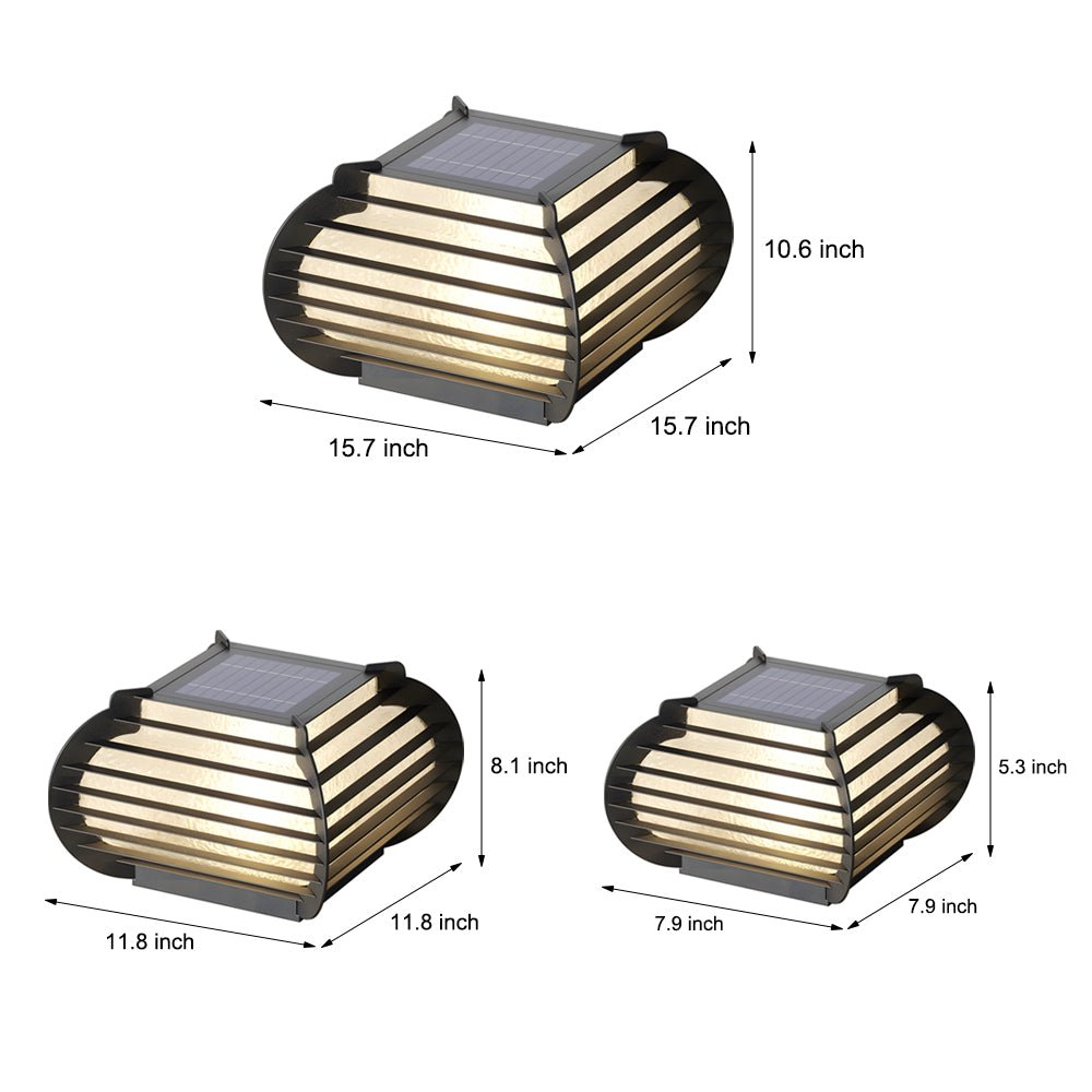 Inspired by traditional styles, this black outdoor pier mount post light is designed for installation on top of a column or other flat surface. It features a fluid and natural design with a wavy surface and lantern-shaped profile frame, complemented by a tiered lattice top that adds visual depth.