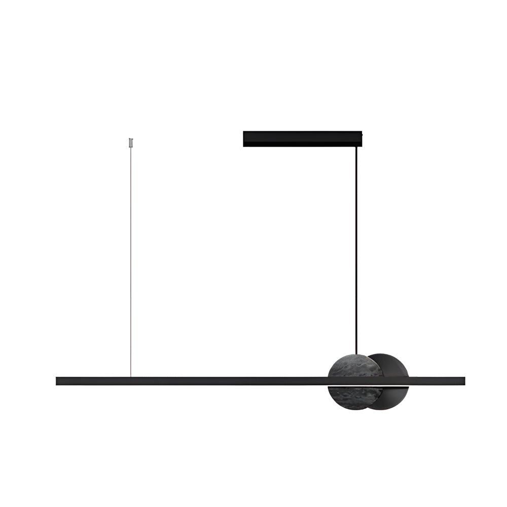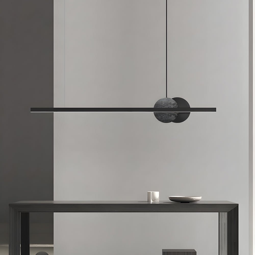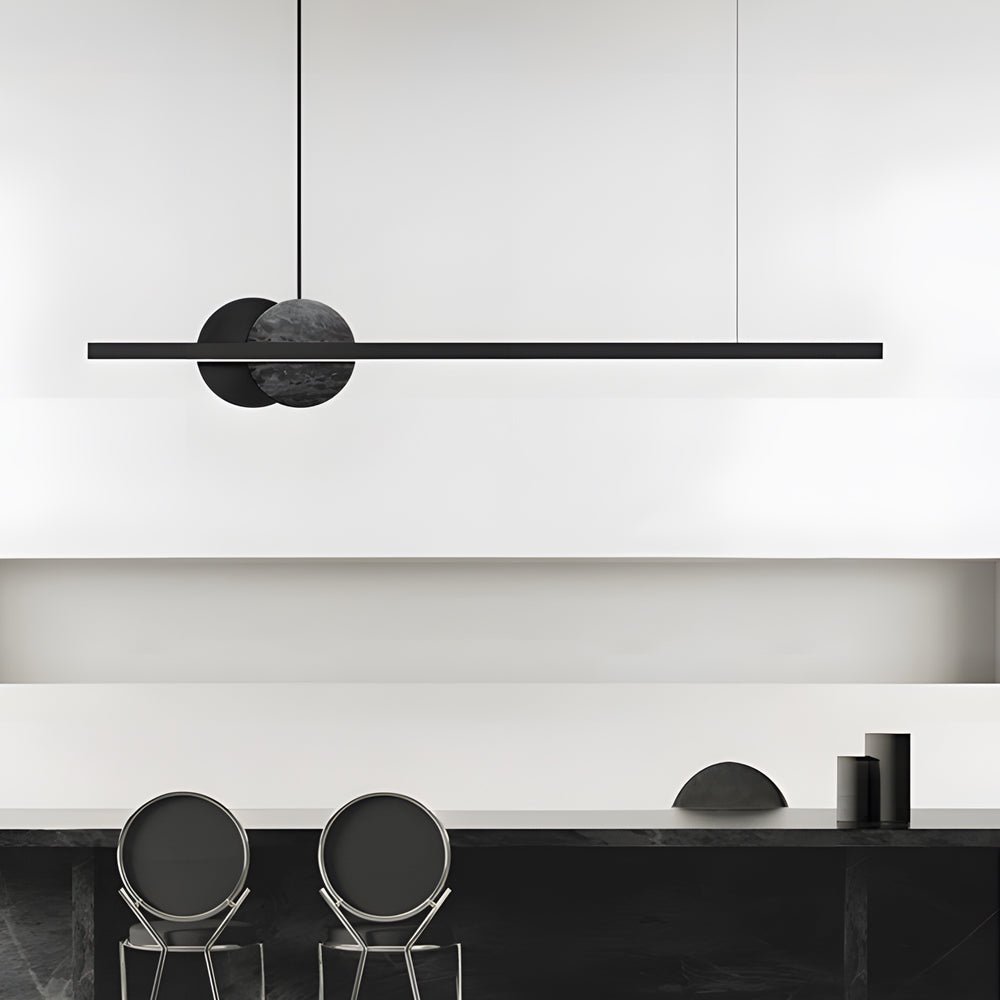 The Minihouzz Round Marble Linear Pendant Light is an energy-efficient LED fixture designed to illuminate dining areas and kitchen islands. It features a minimal profile, round marble accents, and a contemporary aesthetic.