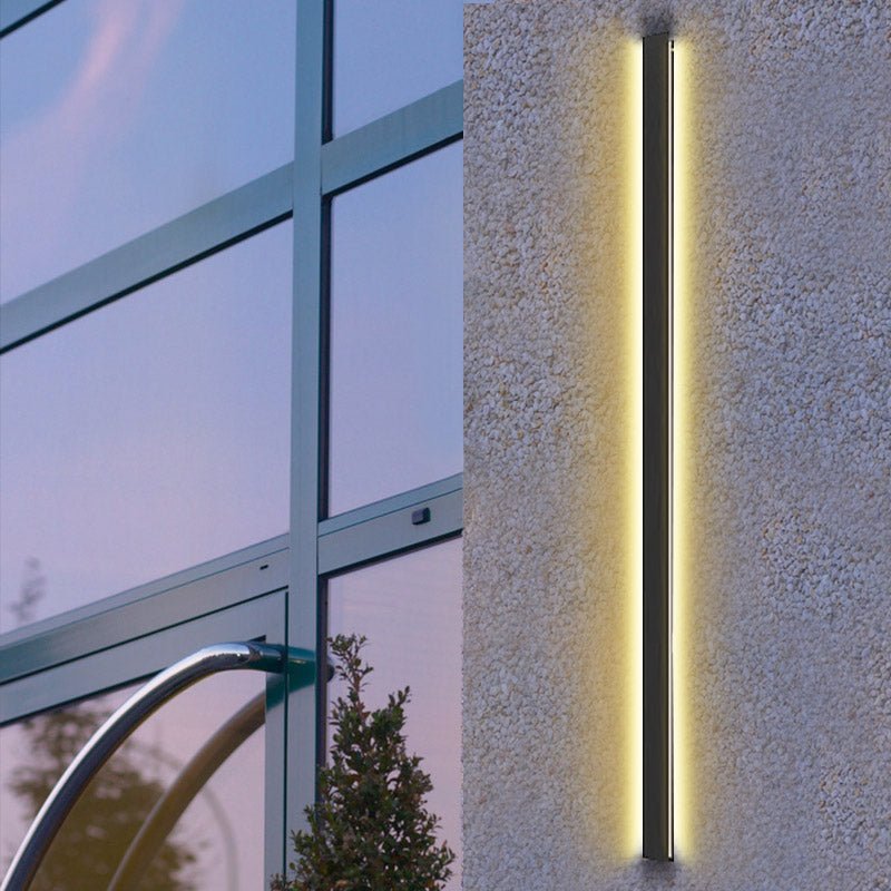 This black long wall light fixture is a transitional LED garden lighting solution suitable for various landscape designs. Designed for outdoor use, these LED wall lights can be mounted vertically or horizontally on walls or posts, enhancing the aesthetic of any garden.