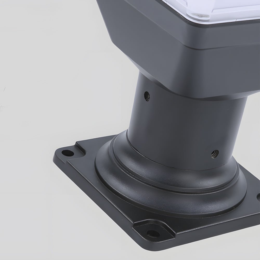 - This square solar LED outdoor post light provides illumination without the need for wiring. Its modern design offers versatility for pier or post mounting. Under a full charge, it provides dusk-to-dawn functionality, illuminating paths, porches, gardens, and similar outdoor areas. The light features a smooth lantern shape with textured PC lampshade details complementing its squared form. The flat top design integrates the solar panel.
