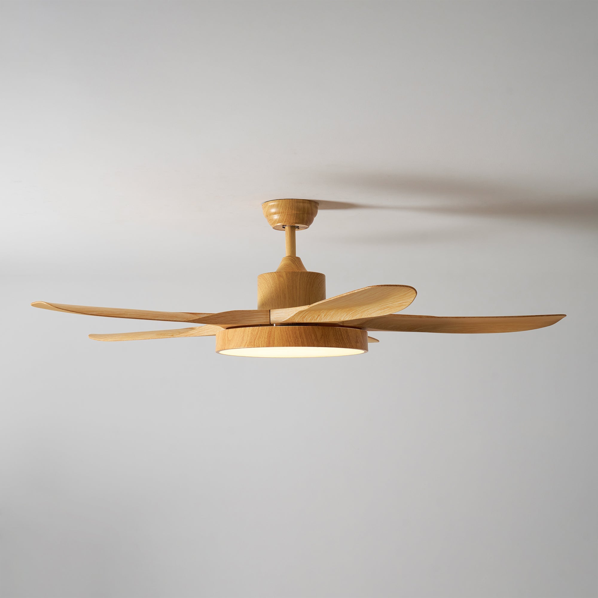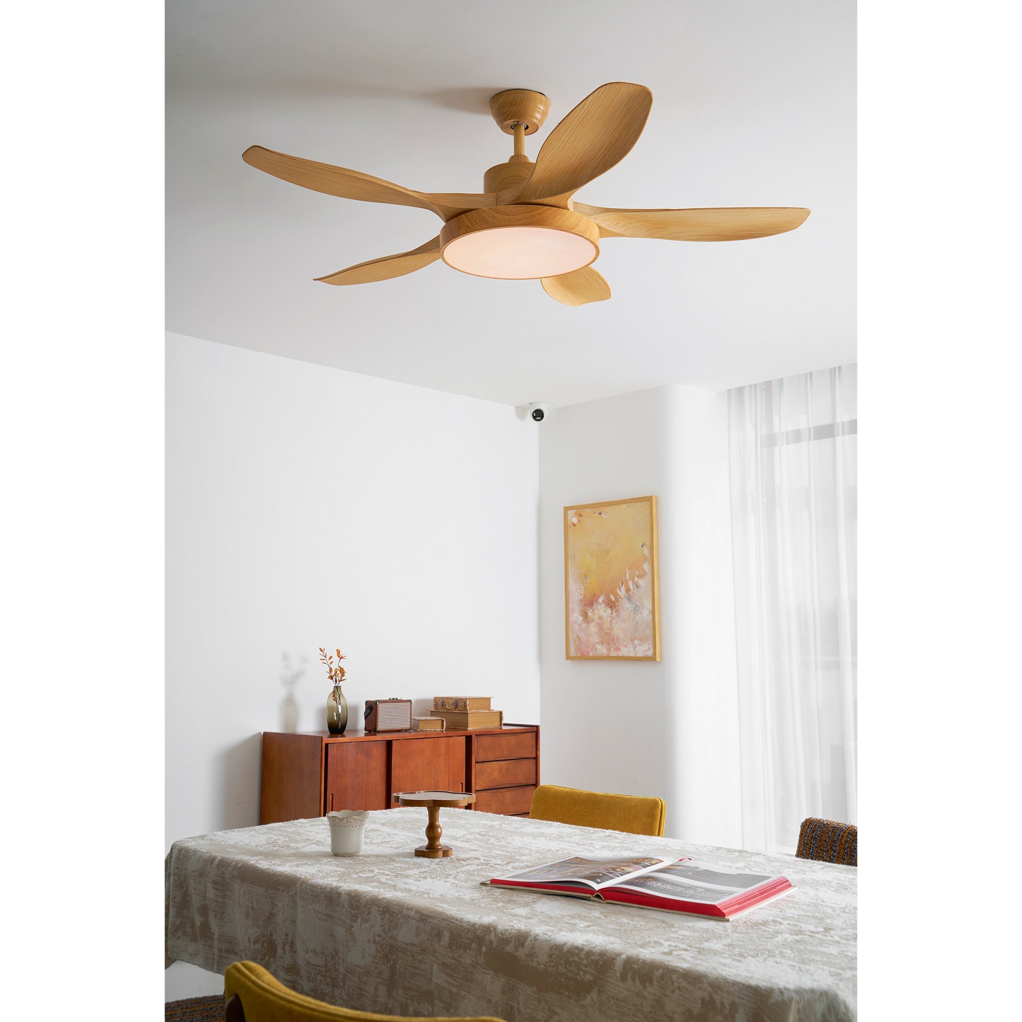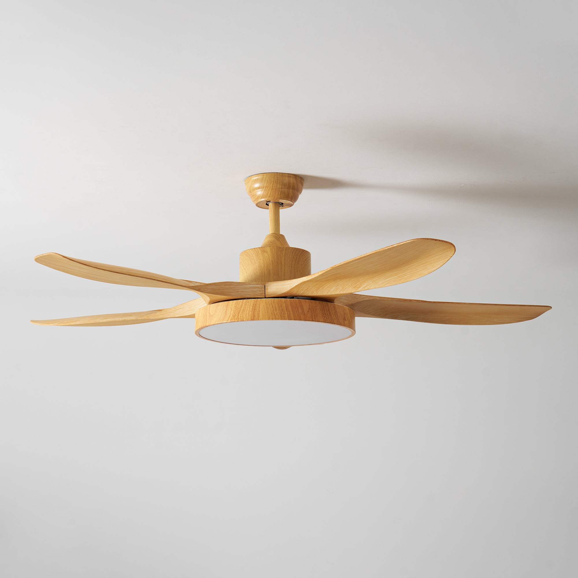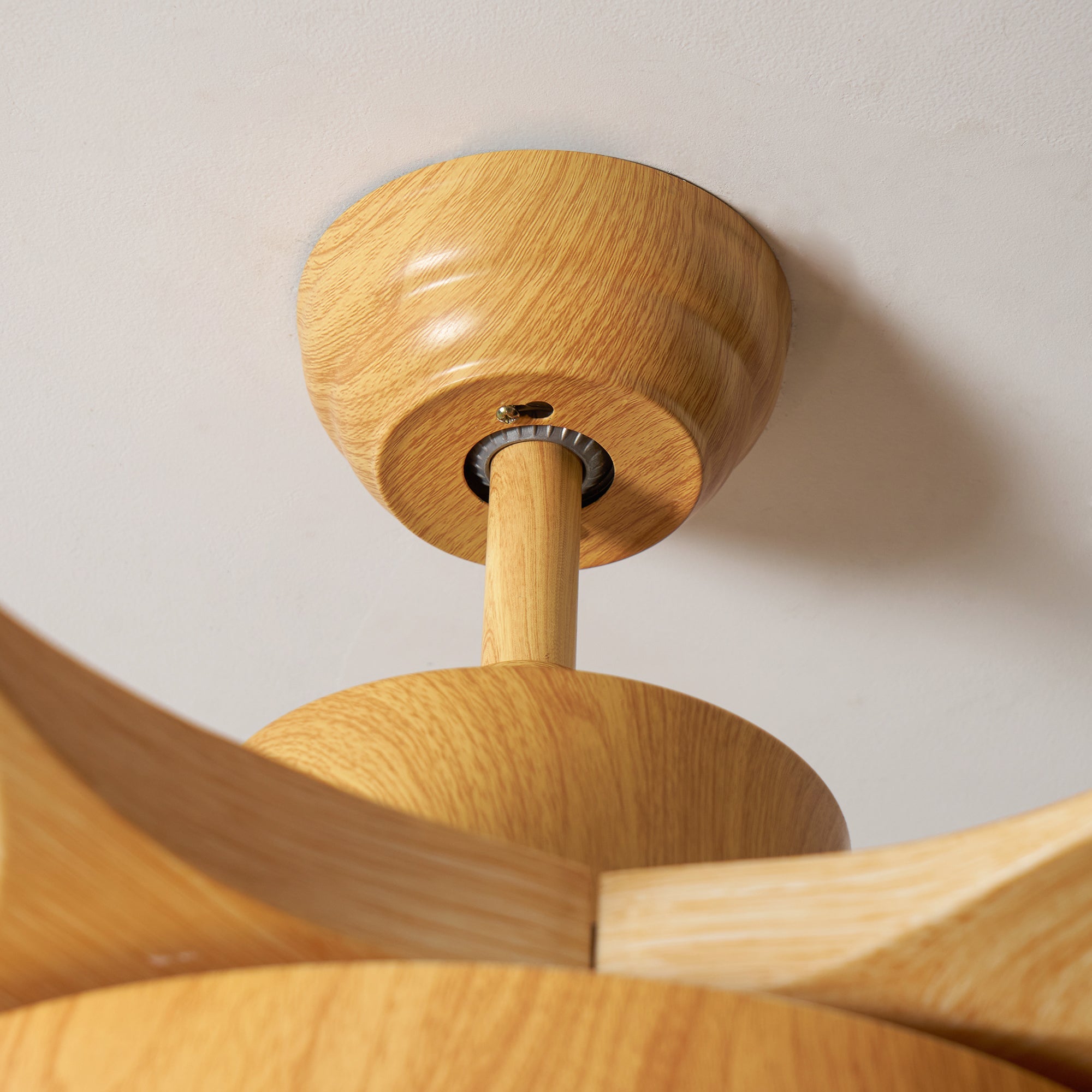 The fan blades are constructed from durable ABS material with a refined wood-grain finish, offering the aesthetic of natural wood with enhanced durability. The lightweight design ensures maximum airflow efficiency while minimizing motor noise. Unlike traditional wooden blades, these materials are resistant to warping or cracking in various humidity levels, ensuring long-lasting and reliable performance.
