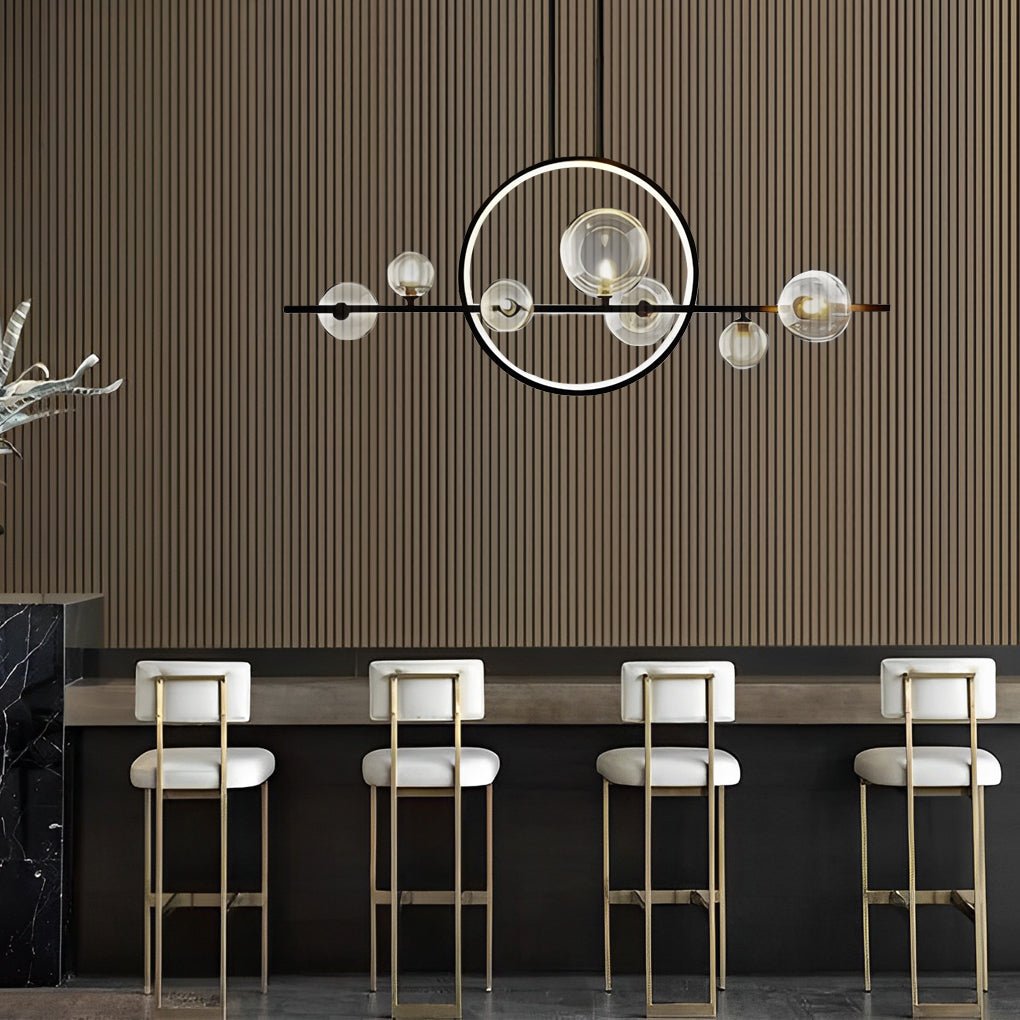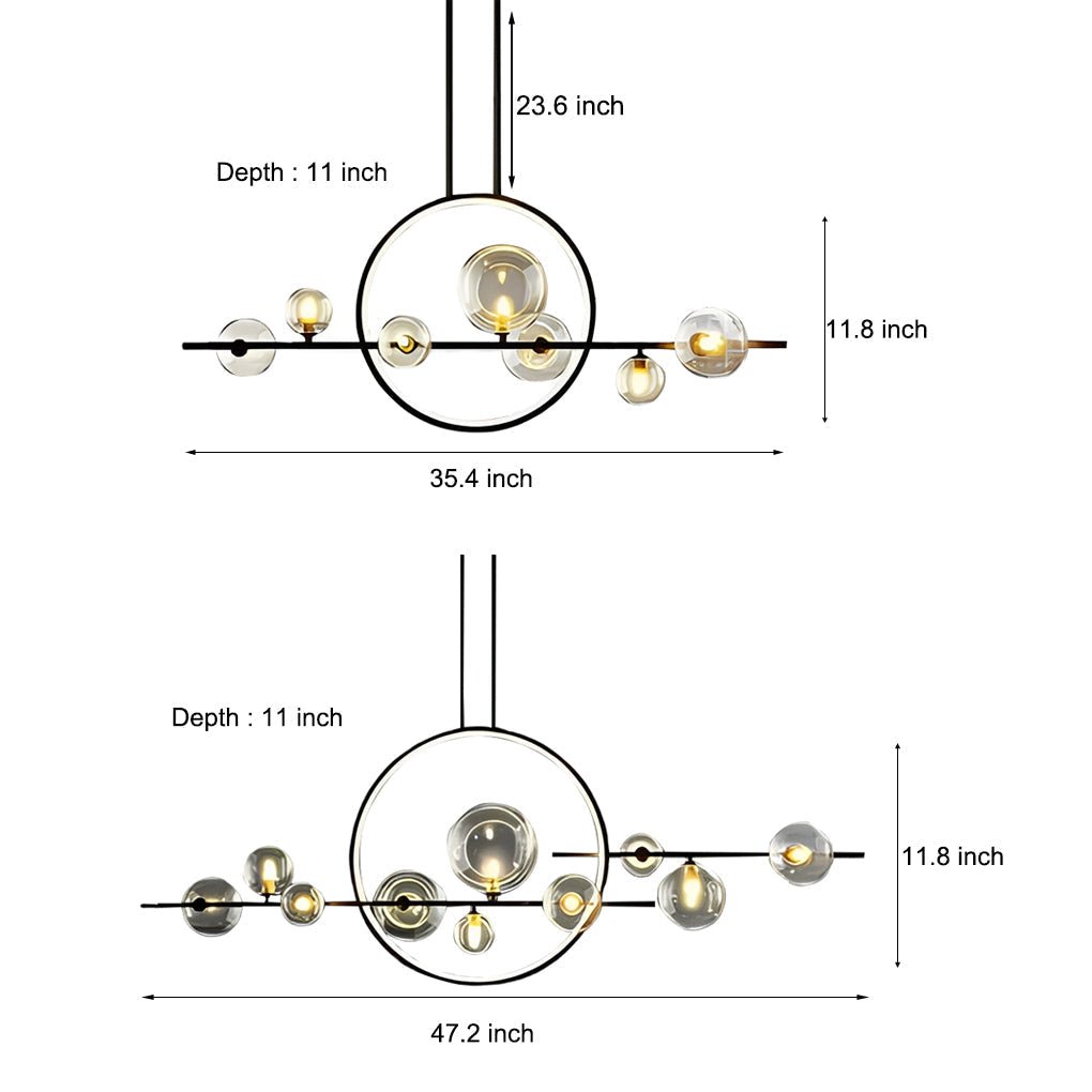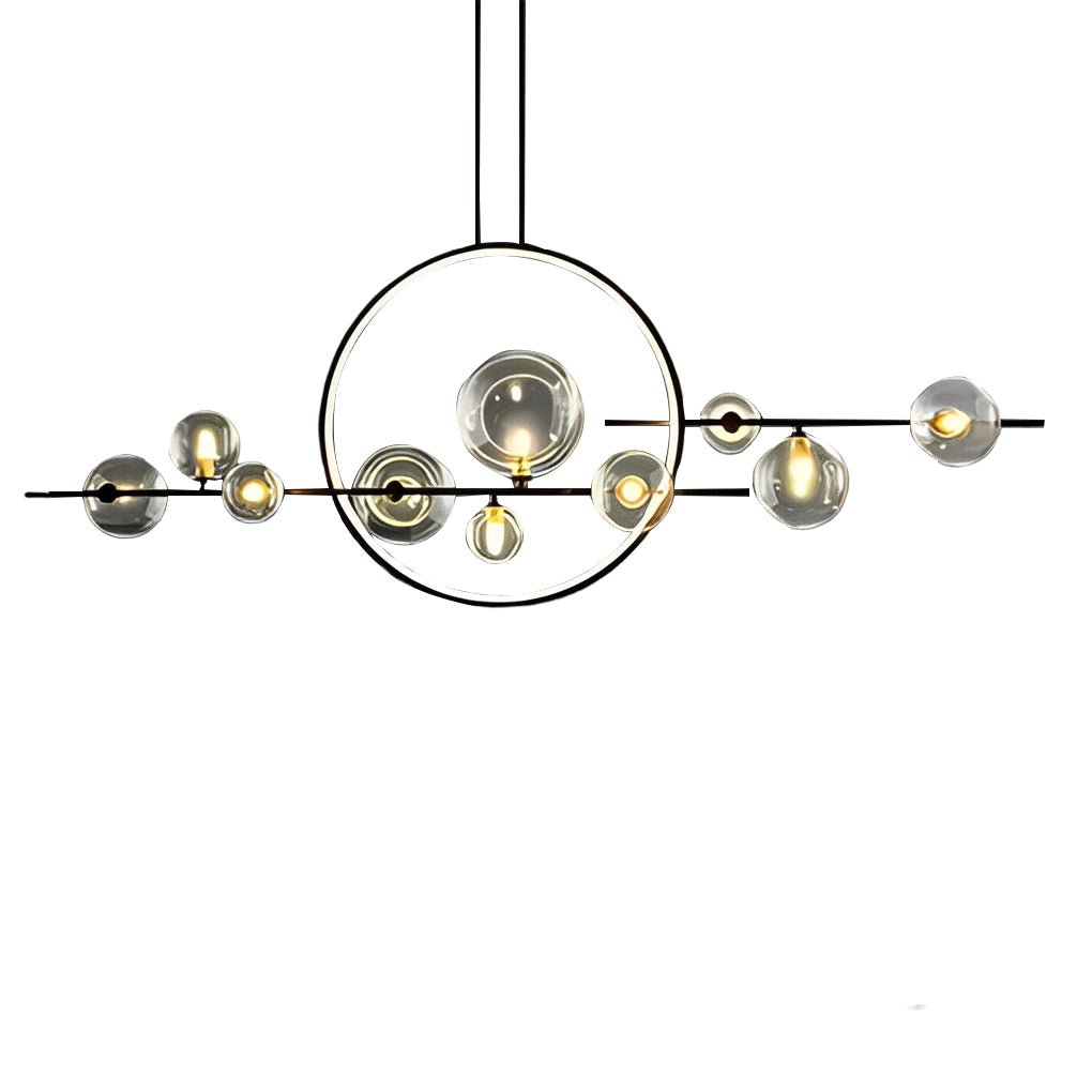 - Composed of bubble glass shades, a ring, and a strip body, this pendant light serves as a functional and aesthetically refined fixture. It is suitable for illuminating dining rooms and kitchens.