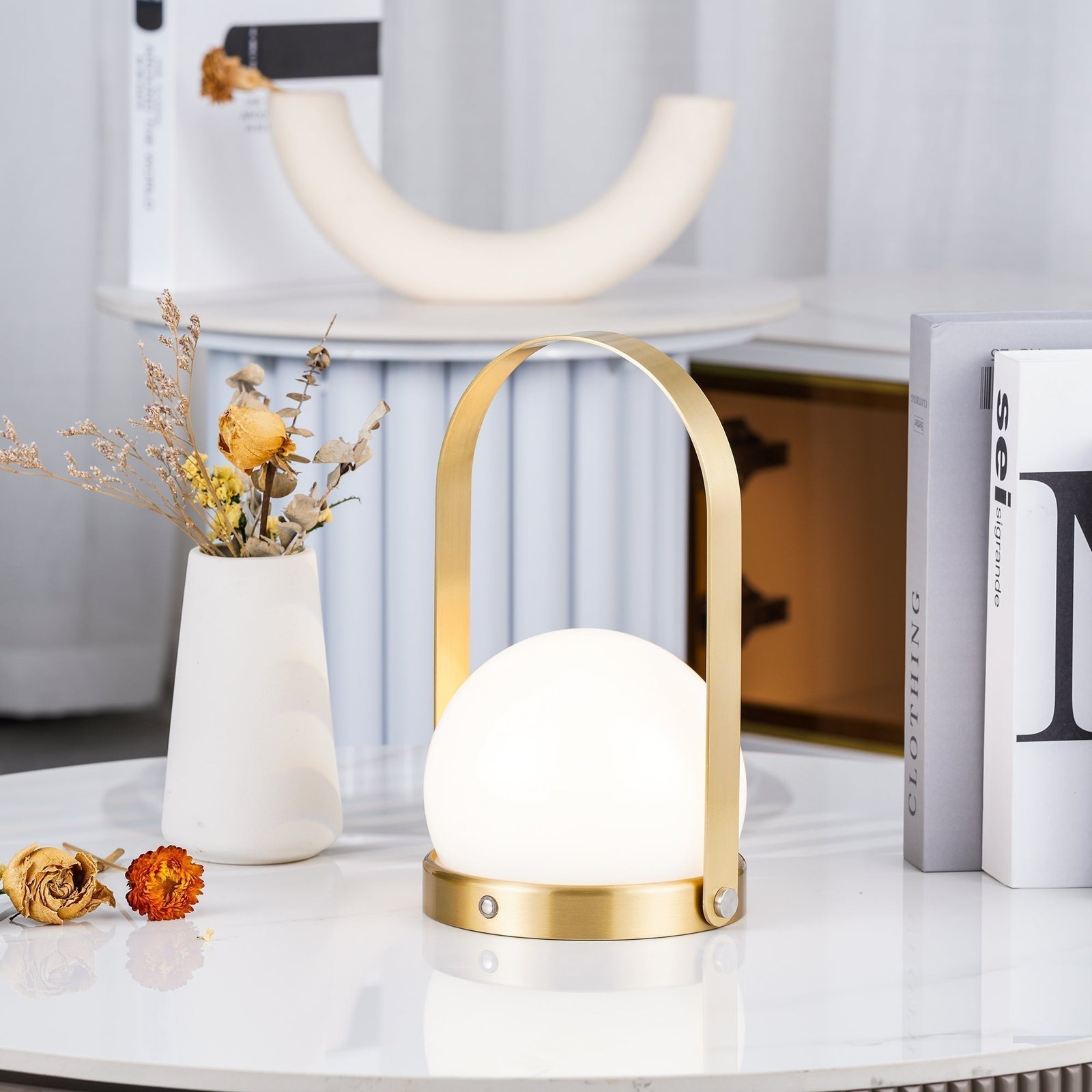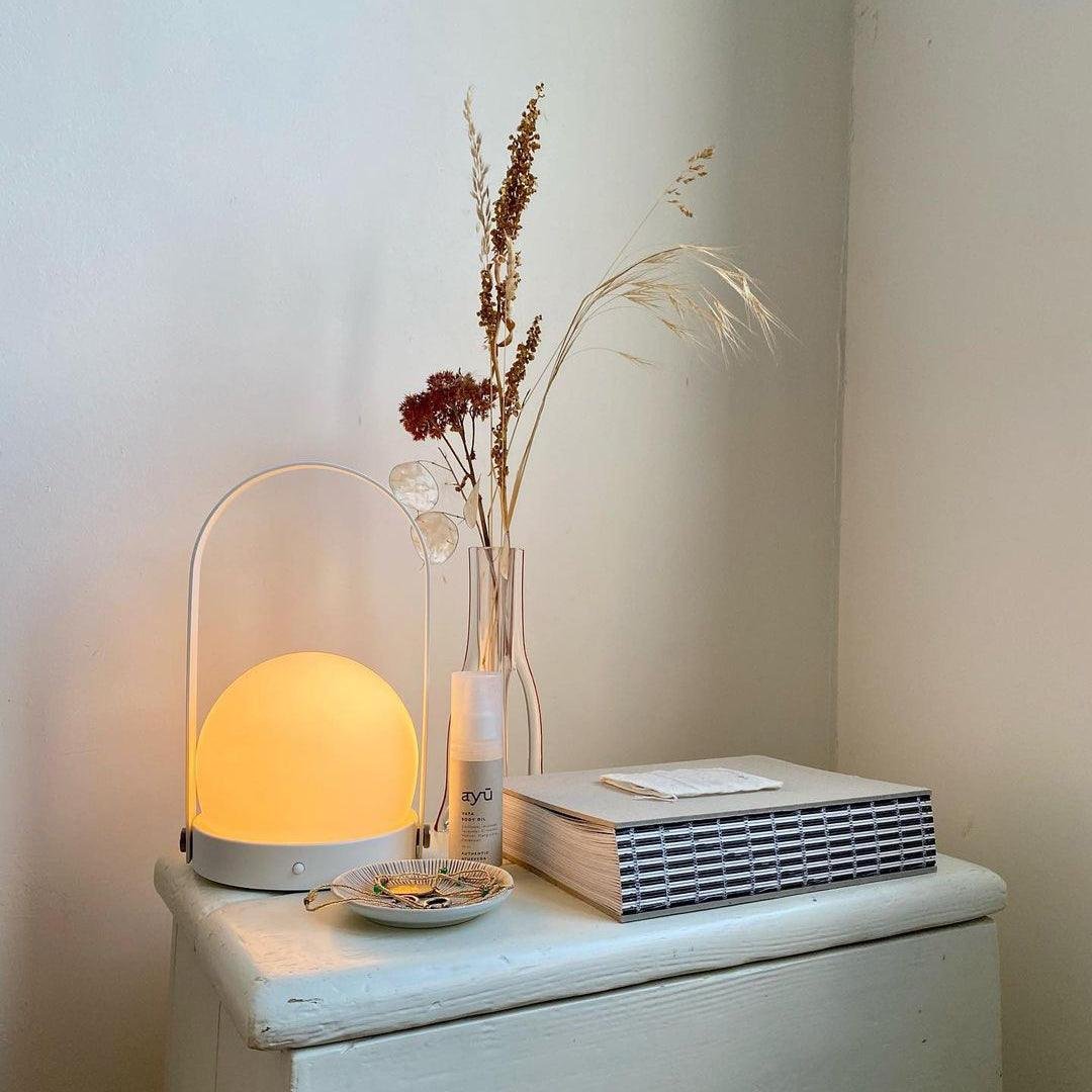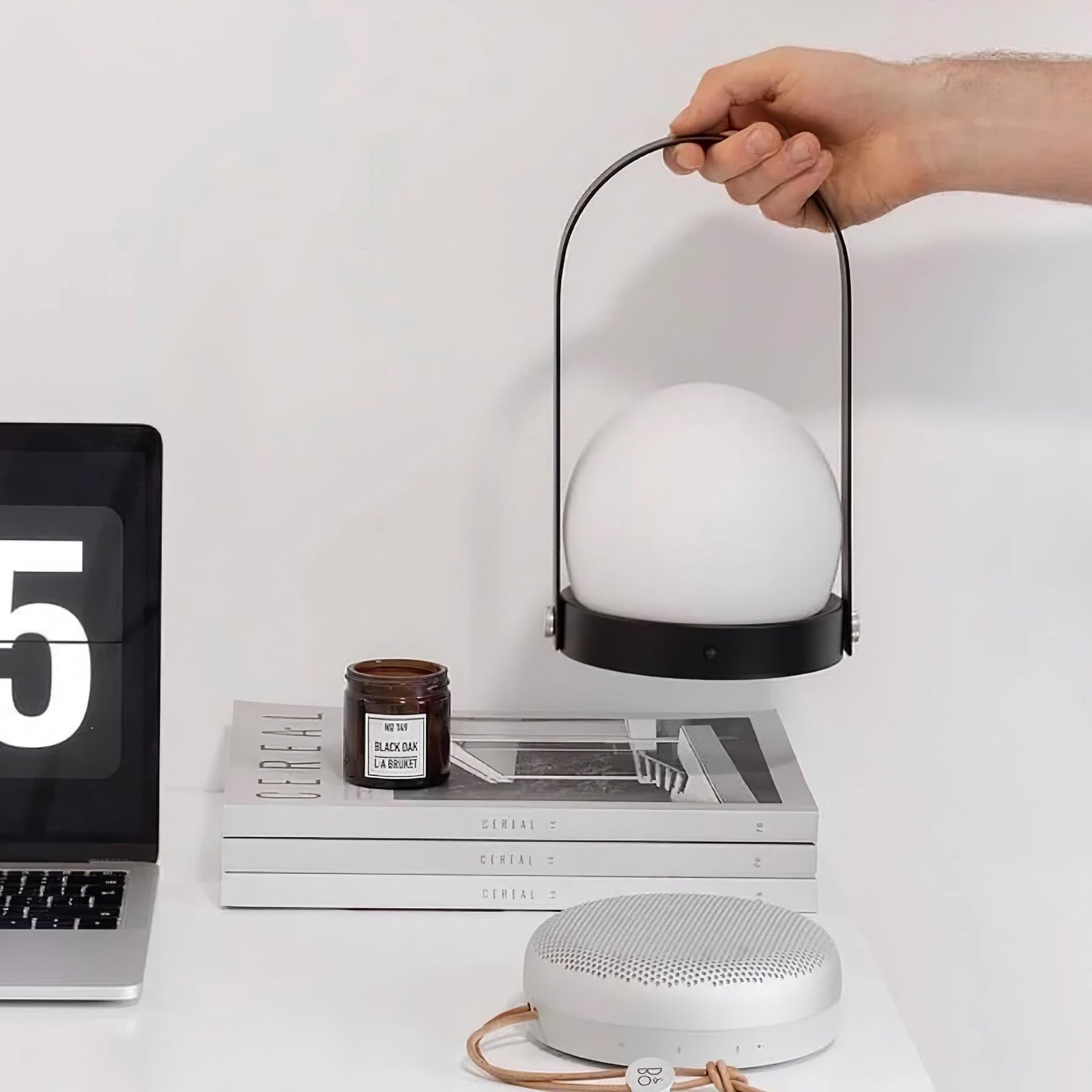 With a sleek, functional handle and a warm orb of light nestled gently in a basket-like base, this lamp is versatile for various settings. It is designed with freedom and flexibility in mind and is available in a range of colors.