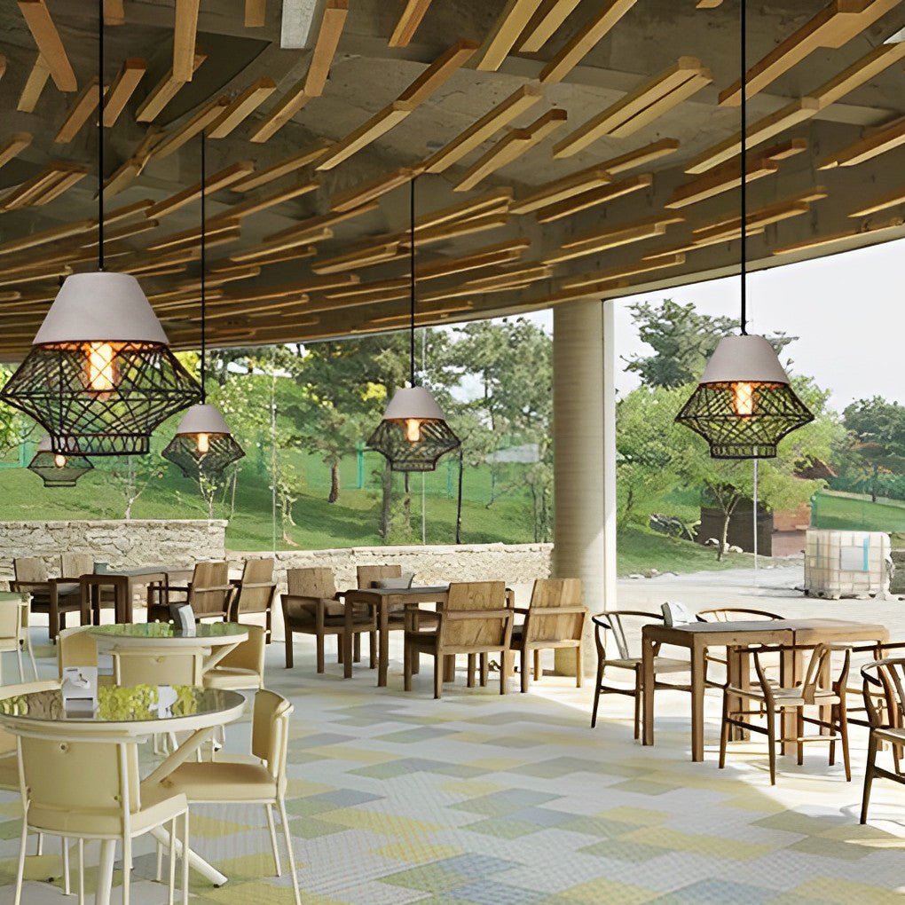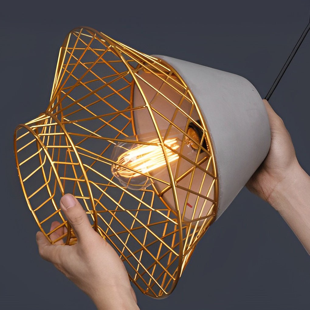 - This pendant light features a durable construction of cement and iron, offering rust resistance and structural integrity. Its distinctive design contributes to a retro aesthetic in any space.