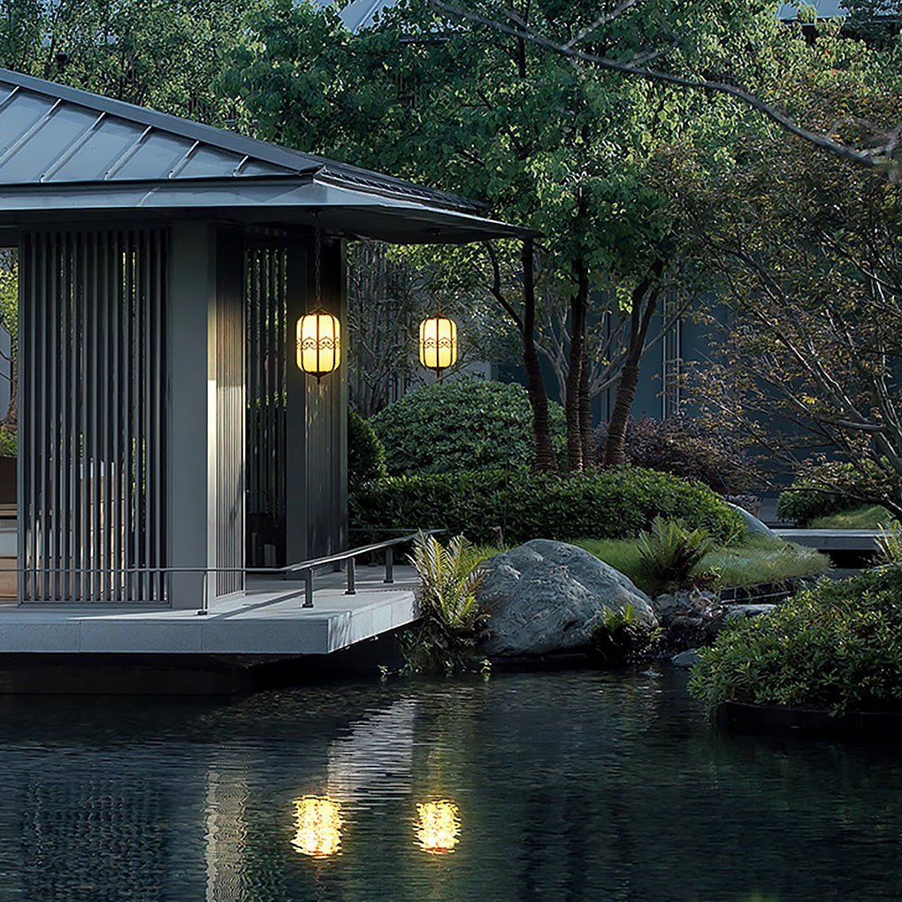 The lamp body features a classical symmetrical pattern, imparting a retro style and an antique aesthetic suitable for courtyards.