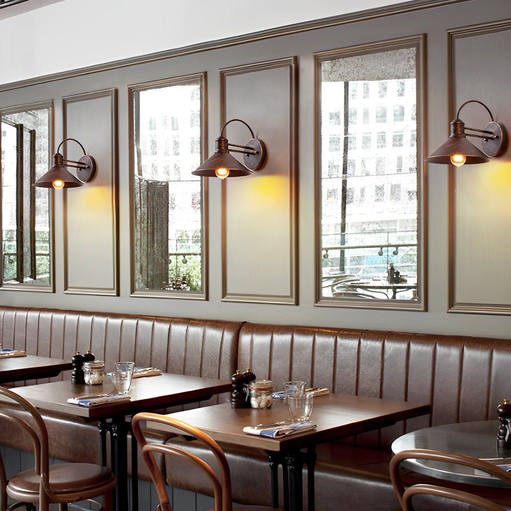 - Iron lampshade of the outdoor wall light is made of spin-casting, which is processed through multiple processes, and it has a delicate and unique texture. This retro industrial style wall sconce is rustproof and designed for lasting appeal without fading.