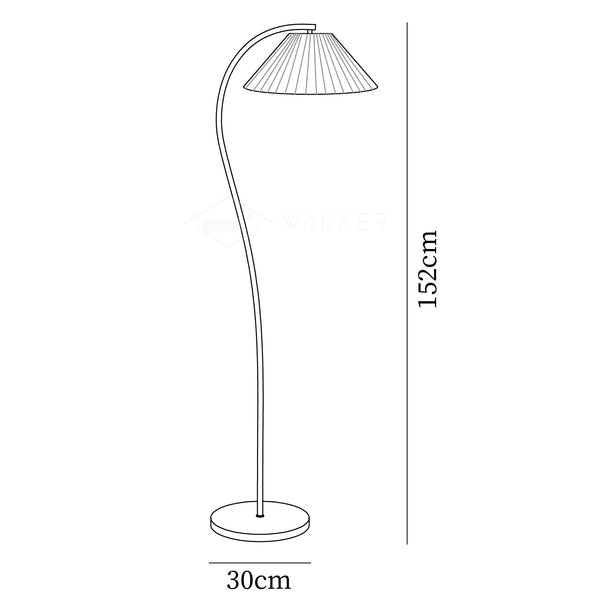 A floor lamp featuring a white pleated lampshade, suitable for traditional, bohemian, and mid-century modern interior decors. Its design provides an elegant and retro aesthetic.