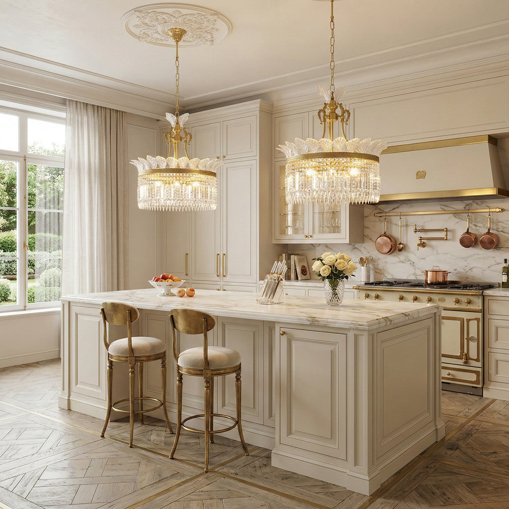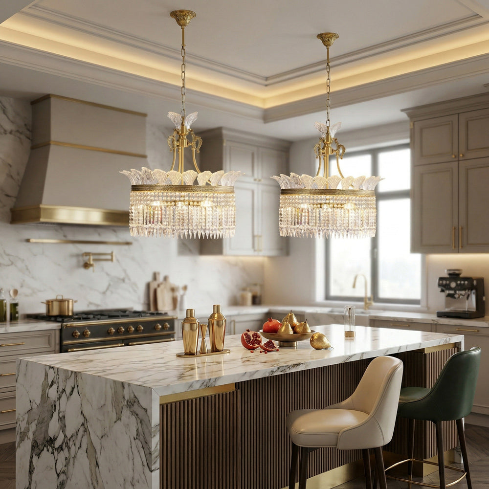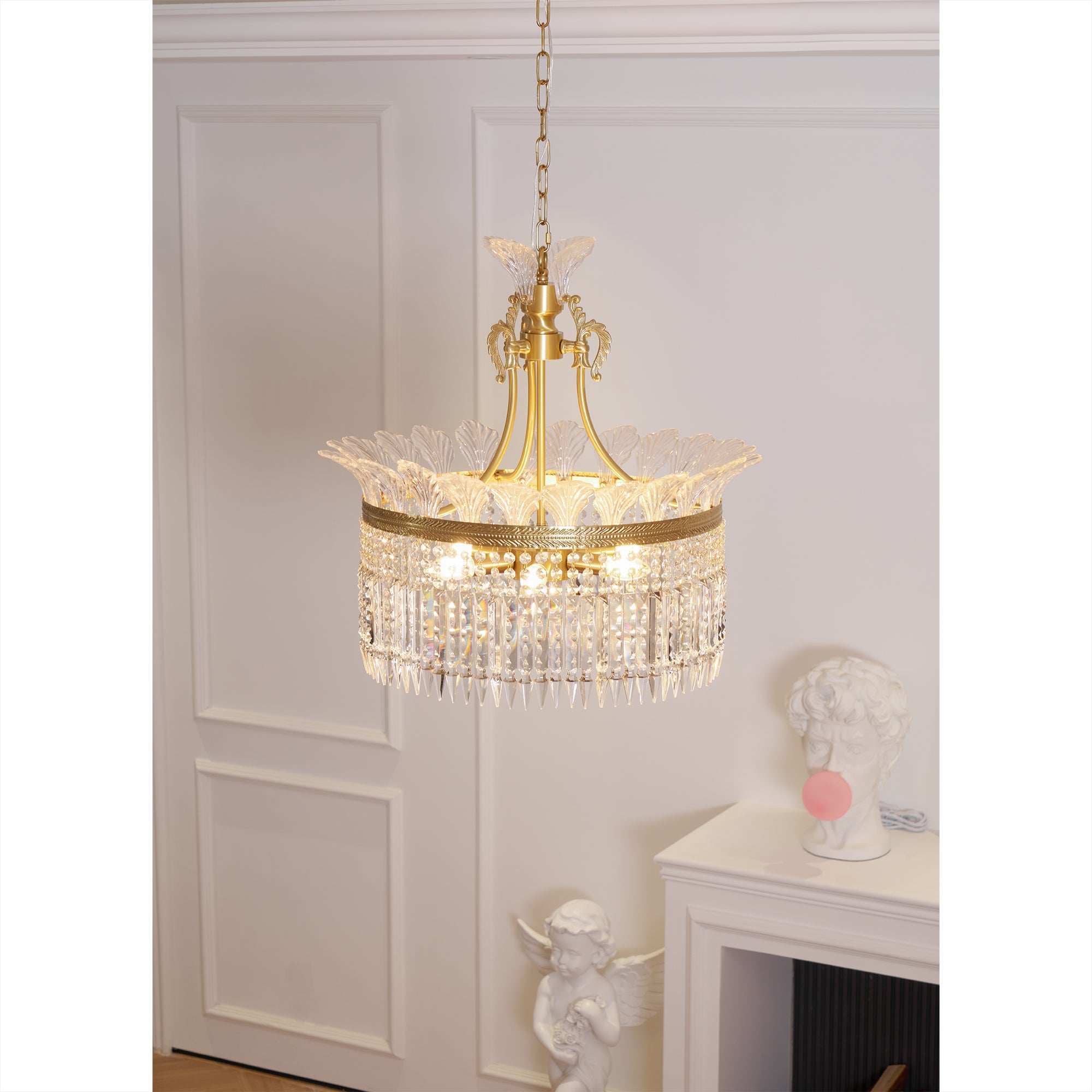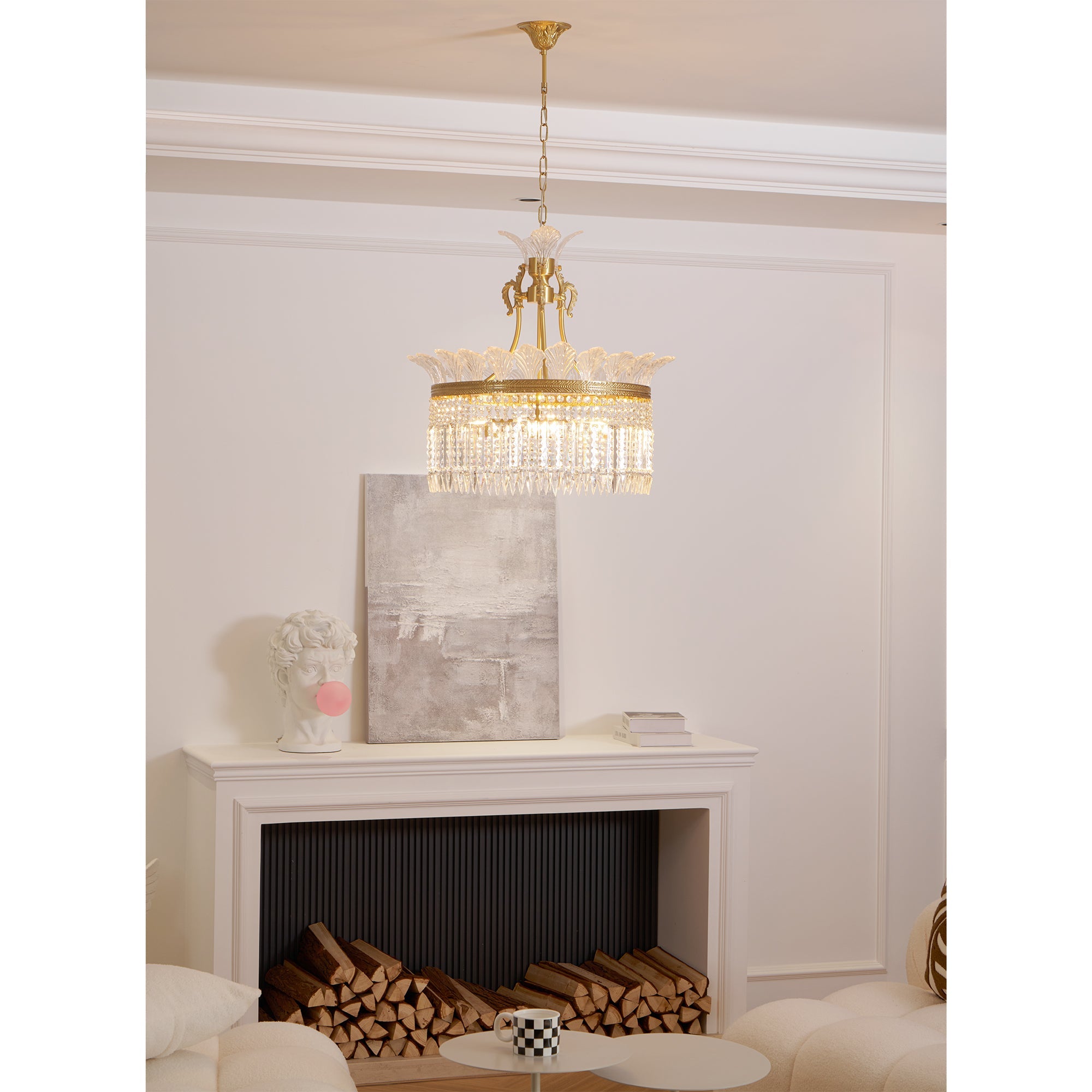 Featuring exceptional transparency and multifaceted surfaces, this chandelier reflects light like countless tiny mirrors. It creates a dynamic visual experience that evolves with every movement, casting a sophisticated interplay of light and shadow to enhance the atmosphere of any interior space.