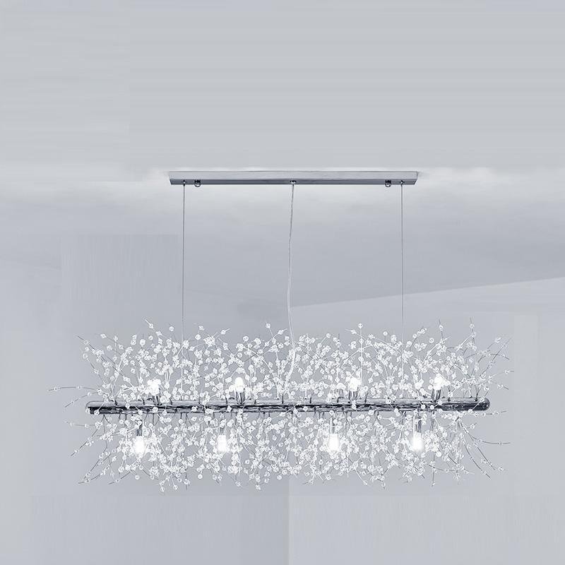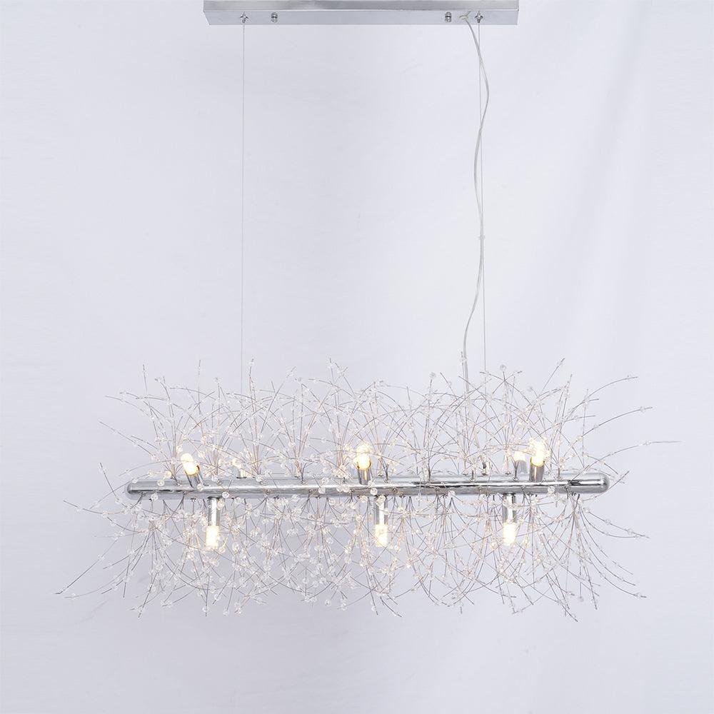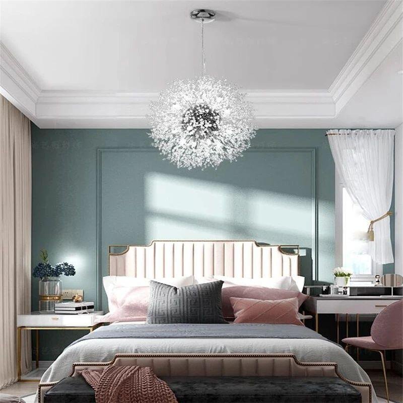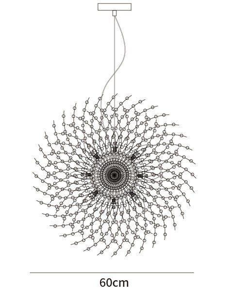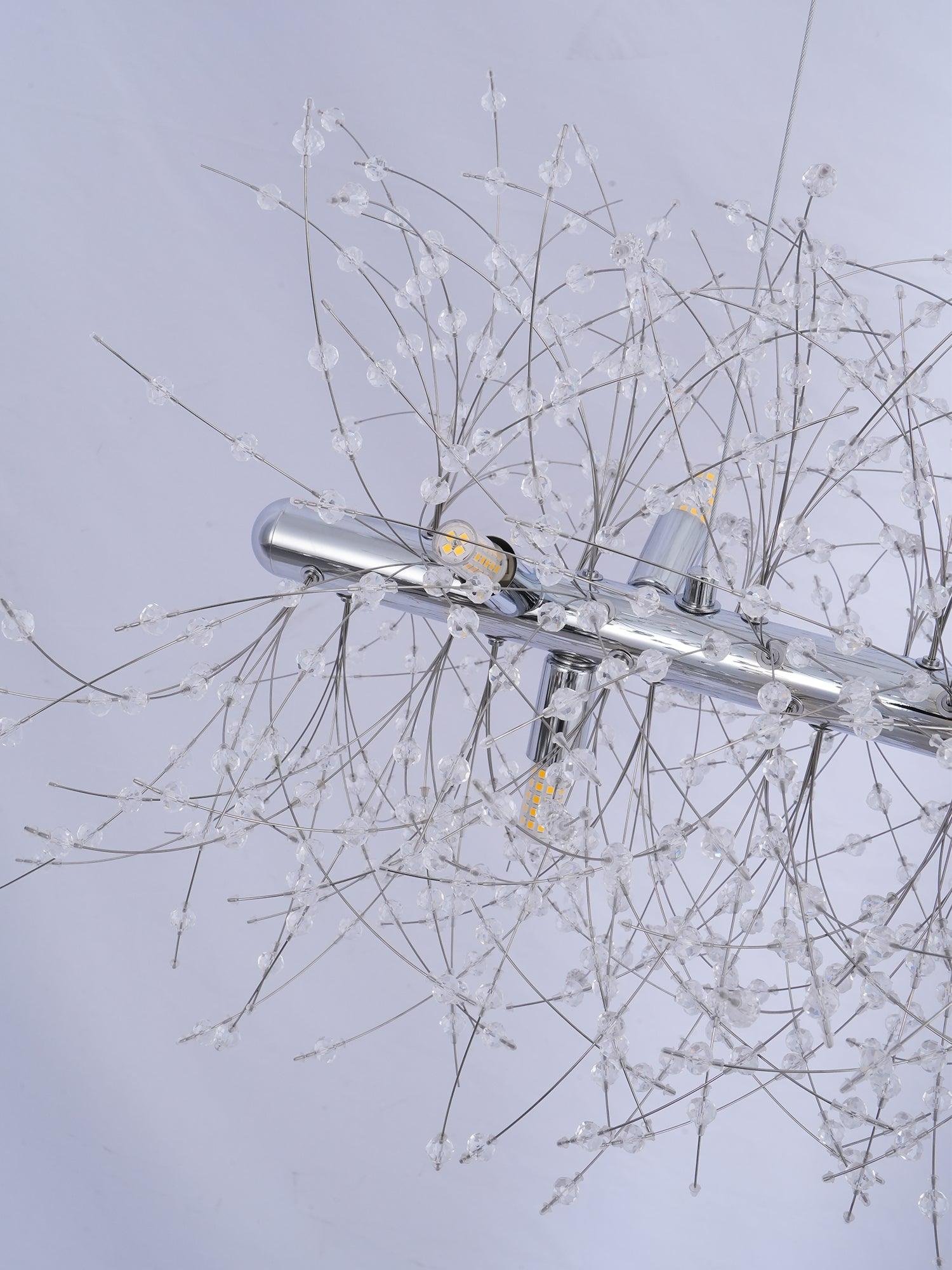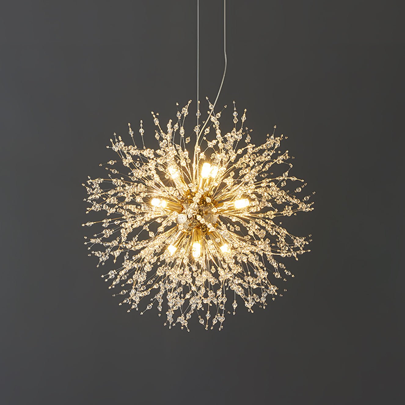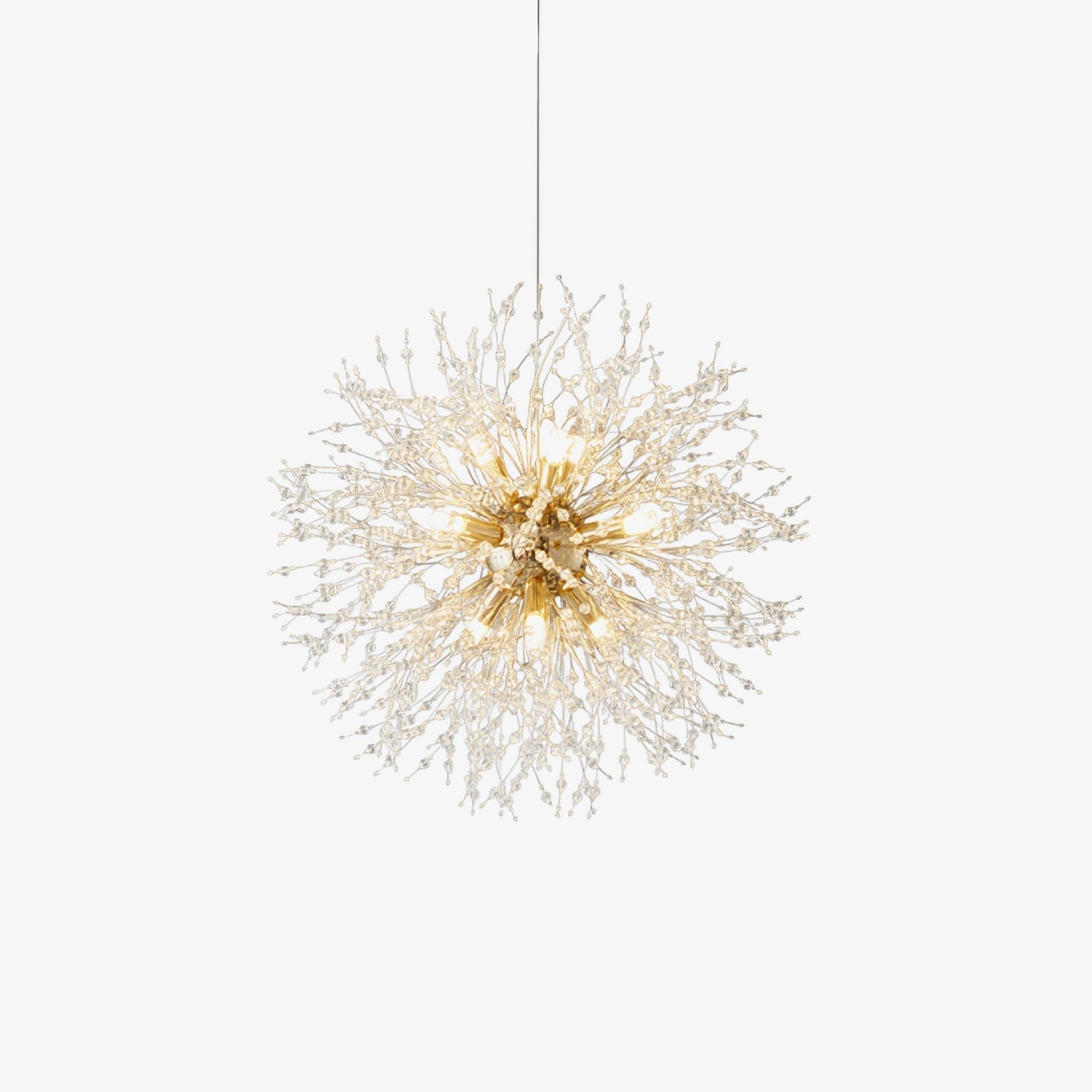 The Crystal Dandelion Chandelier is a modern lighting fixture designed to serve as a functional light source and a decorative focal point. Constructed with metal and premium K9 crystals, this chandelier features detailed craftsmanship and a design that reflects natural forms. The fixture utilizes an energy-efficient light source to provide illumination for various interior settings.