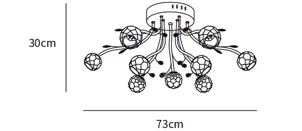 This ceiling light features crystal flowers, each designed and polished to create a radiant effect. The crystal material provides sophisticated illumination and reflection, enhancing interior spaces.