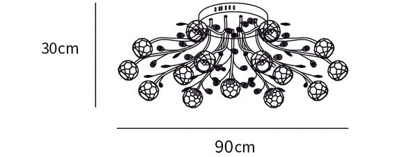 This ceiling light features crystal flowers, each designed and polished to create a radiant effect. The crystal material provides sophisticated illumination and reflection, enhancing interior spaces.