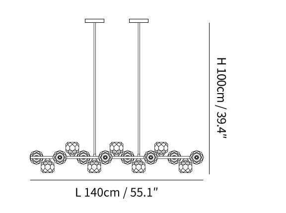 - 11 Heads: L 100cm x W 18cm x H 100cm / L 39.4″ x W 7.1″ x H 39.4″