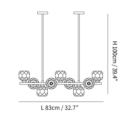 - 11 Heads: L 100cm x W 18cm x H 100cm / L 39.4″ x W 7.1″ x H 39.4″