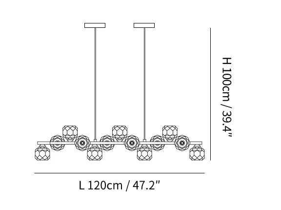 - 13 Heads: L 120cm x W 18cm x H 100cm / L 47.2″ x W 7.1″ x H 39.4″