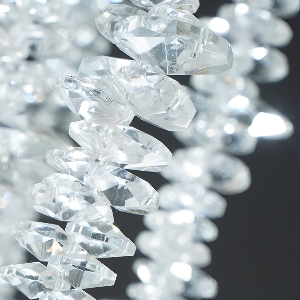 - The chandelier’s crystal pendants exhibit a sparkling luster and high refractive index, enhancing the room’s aesthetic.