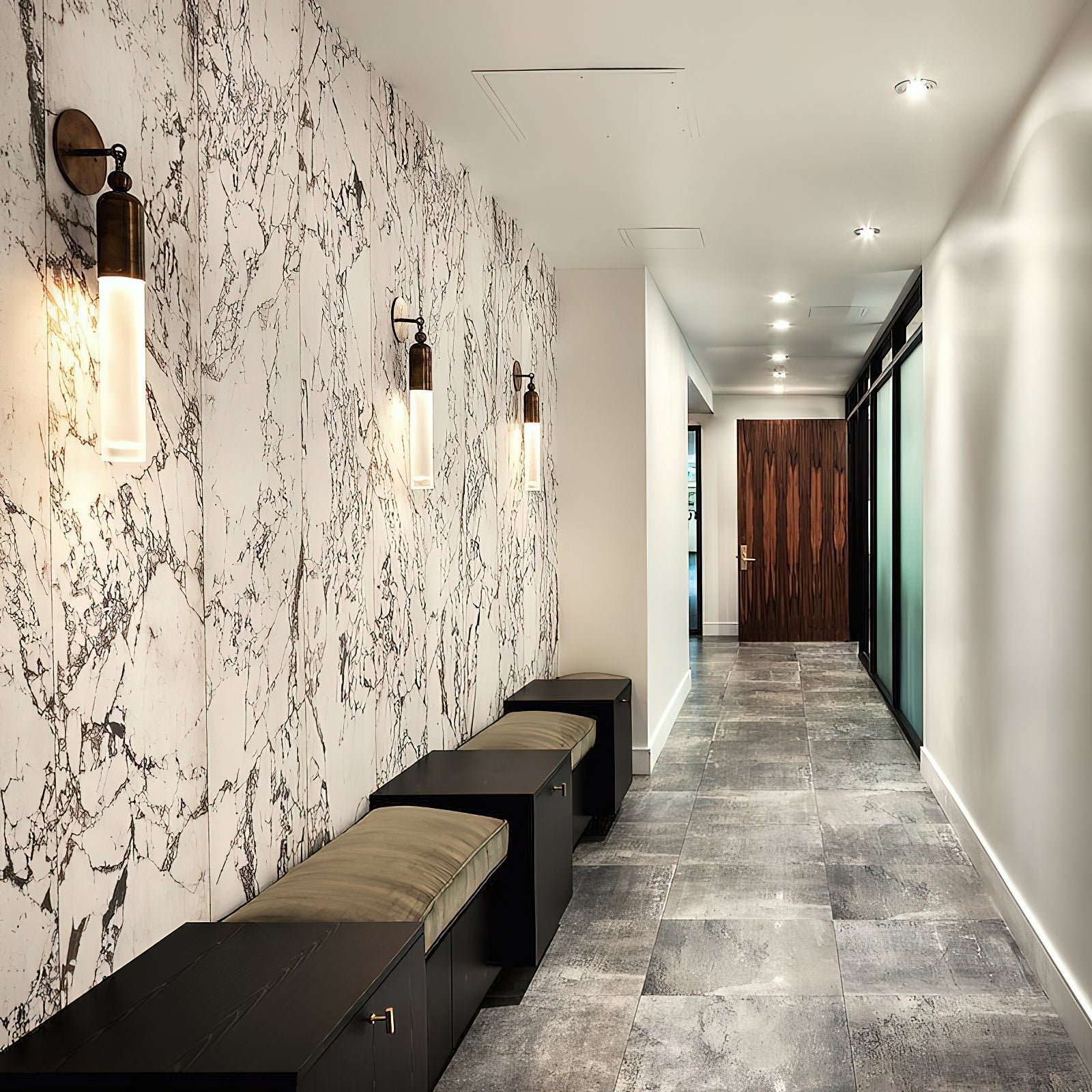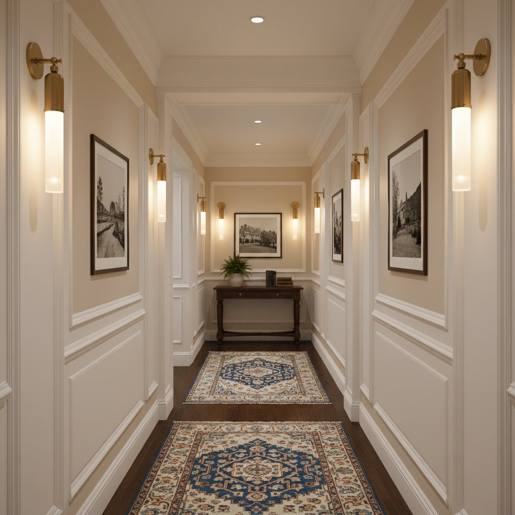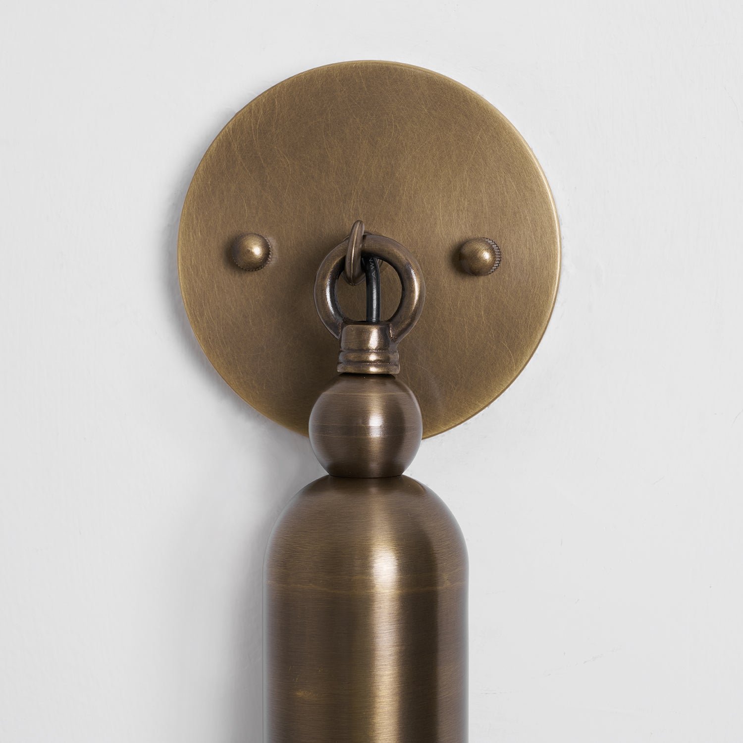 The Darby Wall Lamp reimagines classic decorative design with a modern touch. Its brass dome subtly diffuses light, which is enriched by textured mold-blown glass cylinders, producing a warm, inviting ambiance. This elegant fixture adds refined warmth and timeless charm to any space.