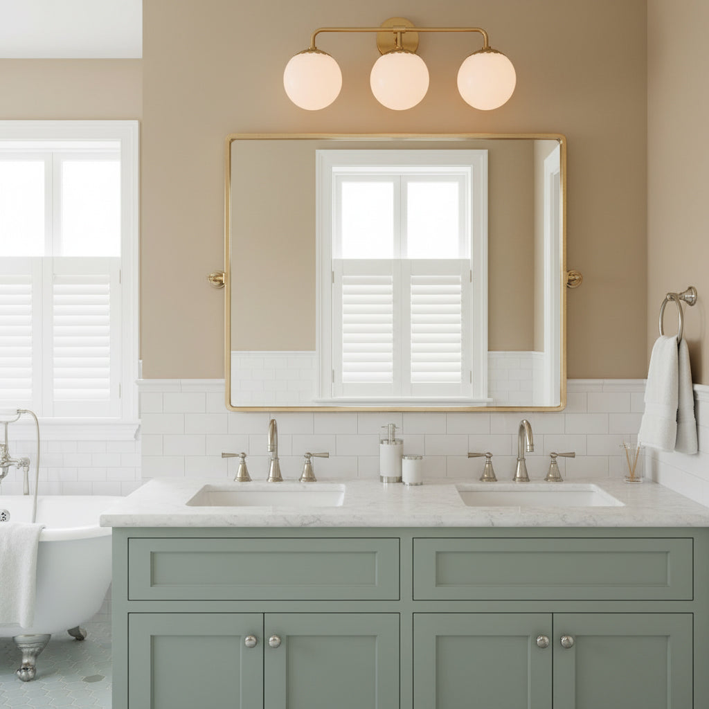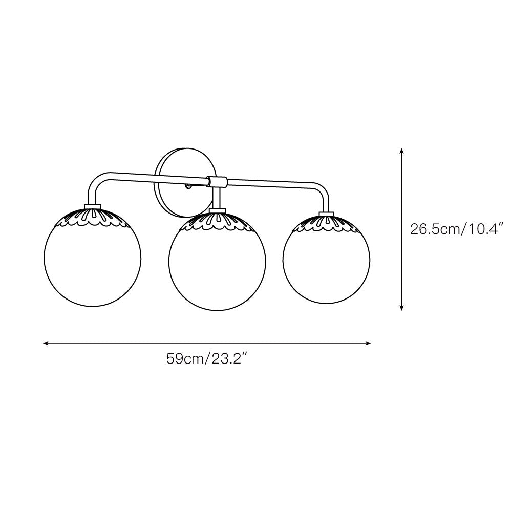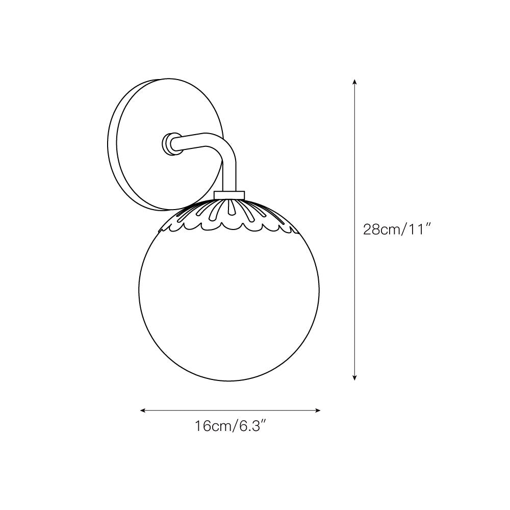 Featuring a flower-shaped metal cap and a glossy white glass globe, this elegant sconce collection blends art deco and modern design elements. It is an ideal choice for mid-century or cottage-style interiors. Use these sconces in pairs to accentuate mantles, mirrors, or bathroom vanities.