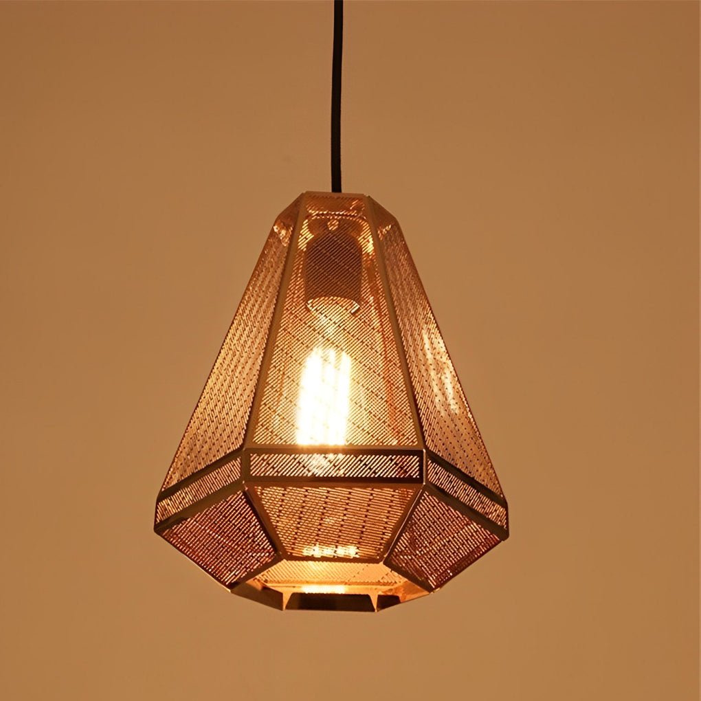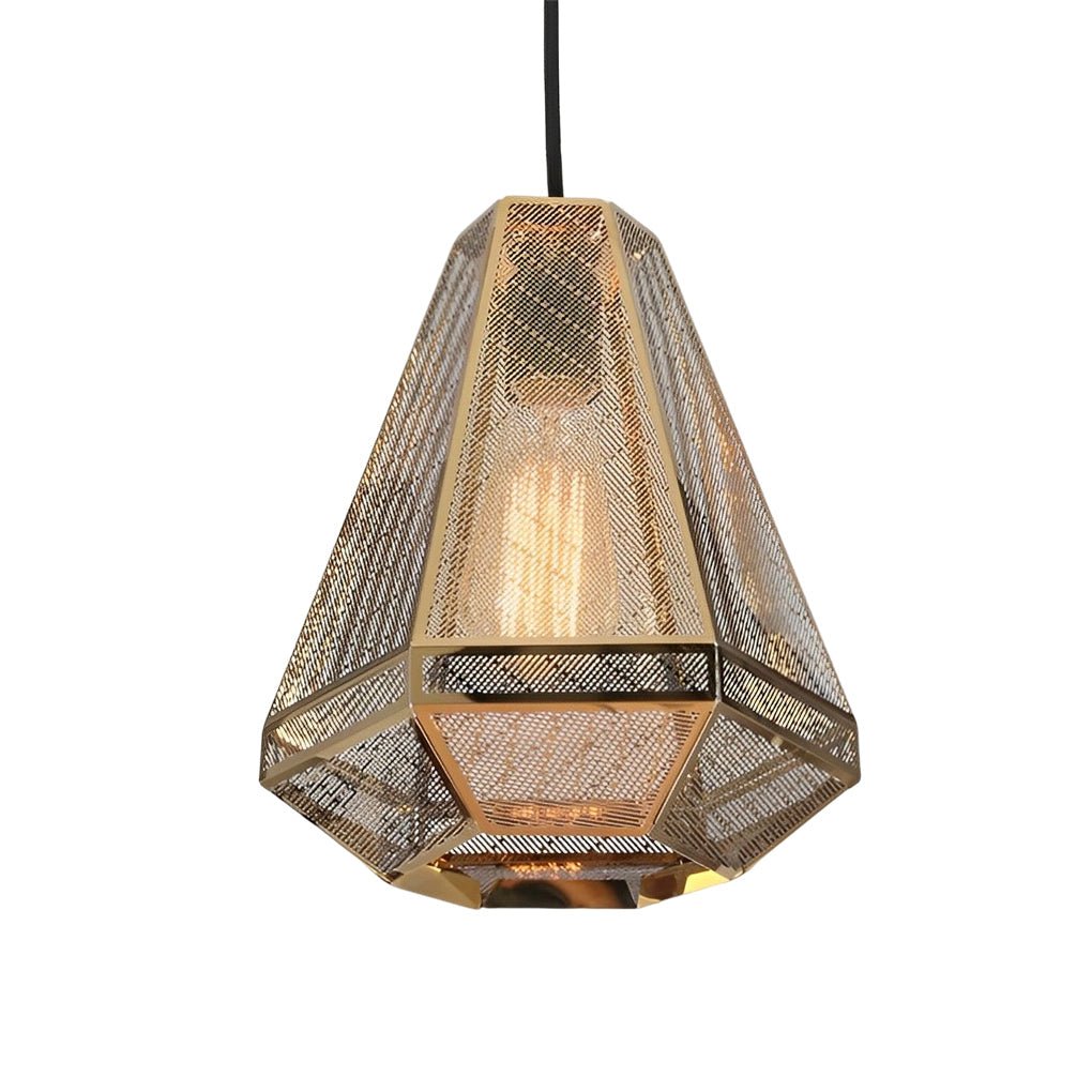 The geometric metal form serves as a distinctive decorative element even when not illuminated. When the light is active, it creates unique patterns of light and shadow, enhancing the ambiance of the space.
