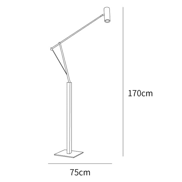 The Ettorino Floor Lamp presents a combination of primary colors with an innovative design. A notable element is the functional detail featuring a red dancing figure shape. This lamp is engineered to provide adjustable and rotatable illumination, suitable for various work surfaces and general lighting needs.