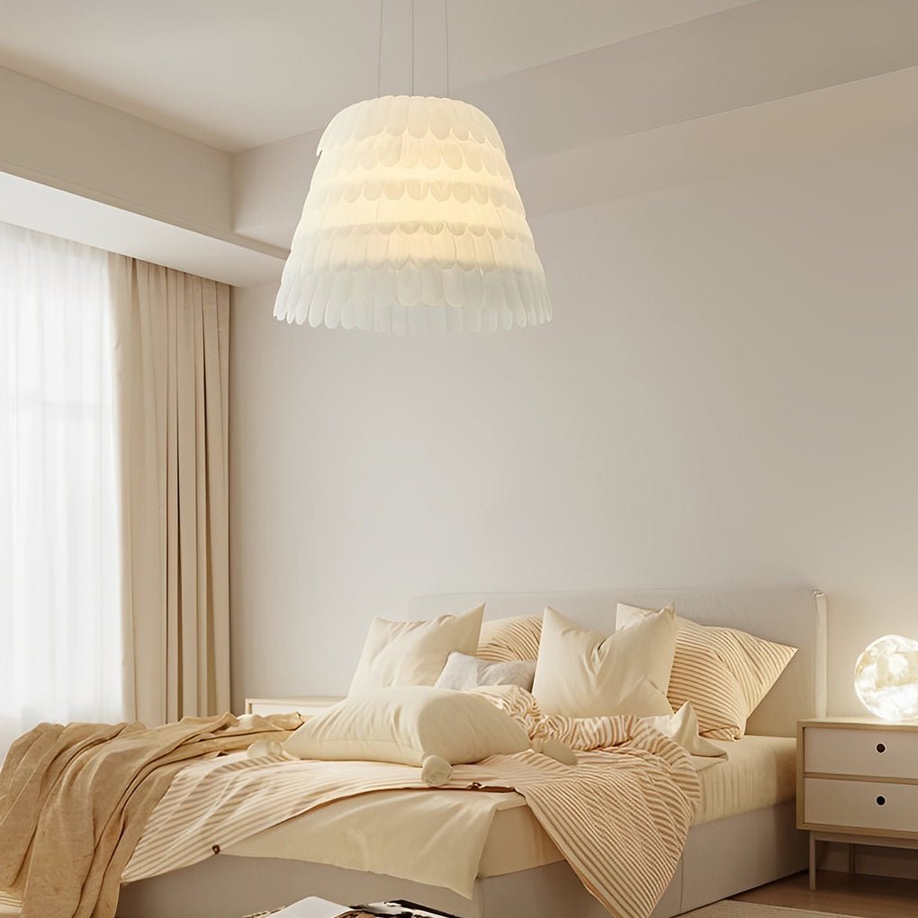 The Minihouzz Feathers Chandelier offers an elegant lighting solution, designed to enhance various interior spaces. Its distinctive feather-inspired design provides a sophisticated aesthetic.