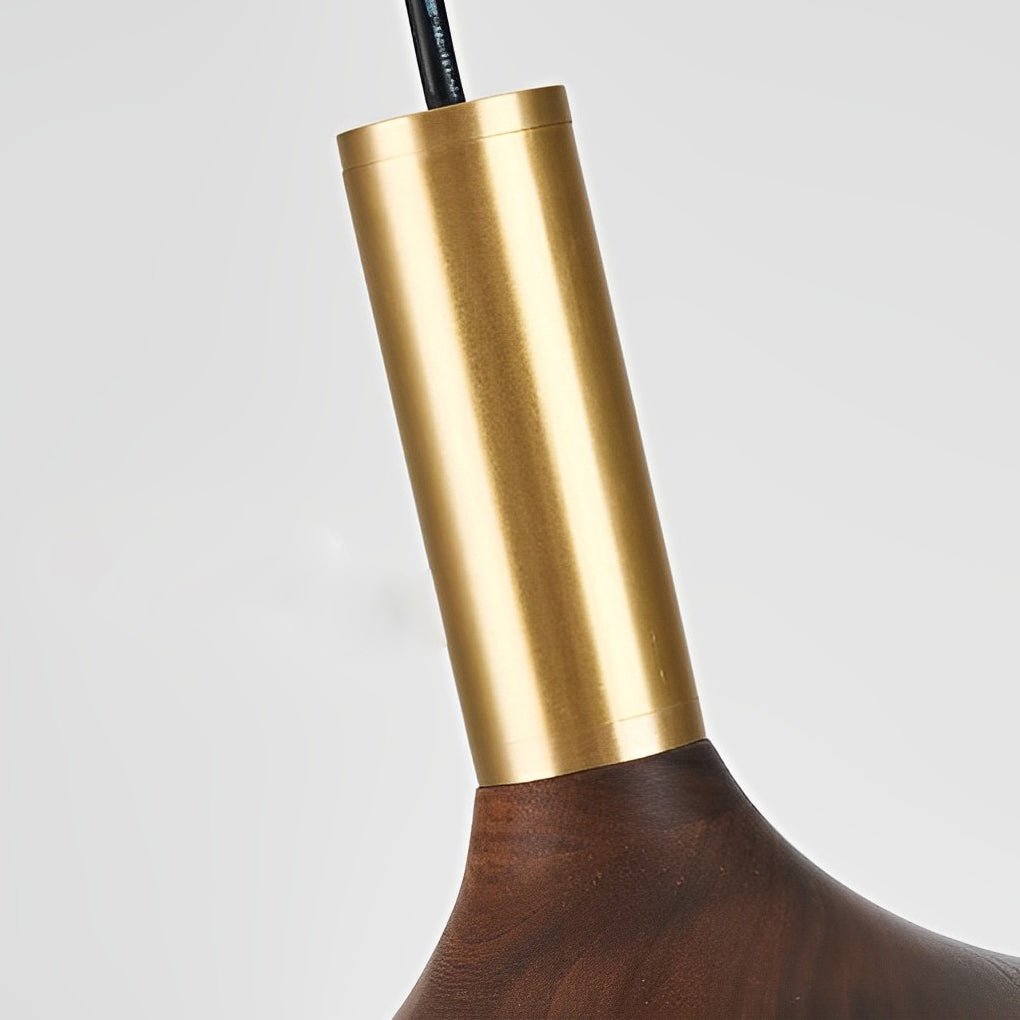 - This pendant light, crafted from solid walnut and copper, features a unique flying saucer shape. Its minimalist design complements various home aesthetics.