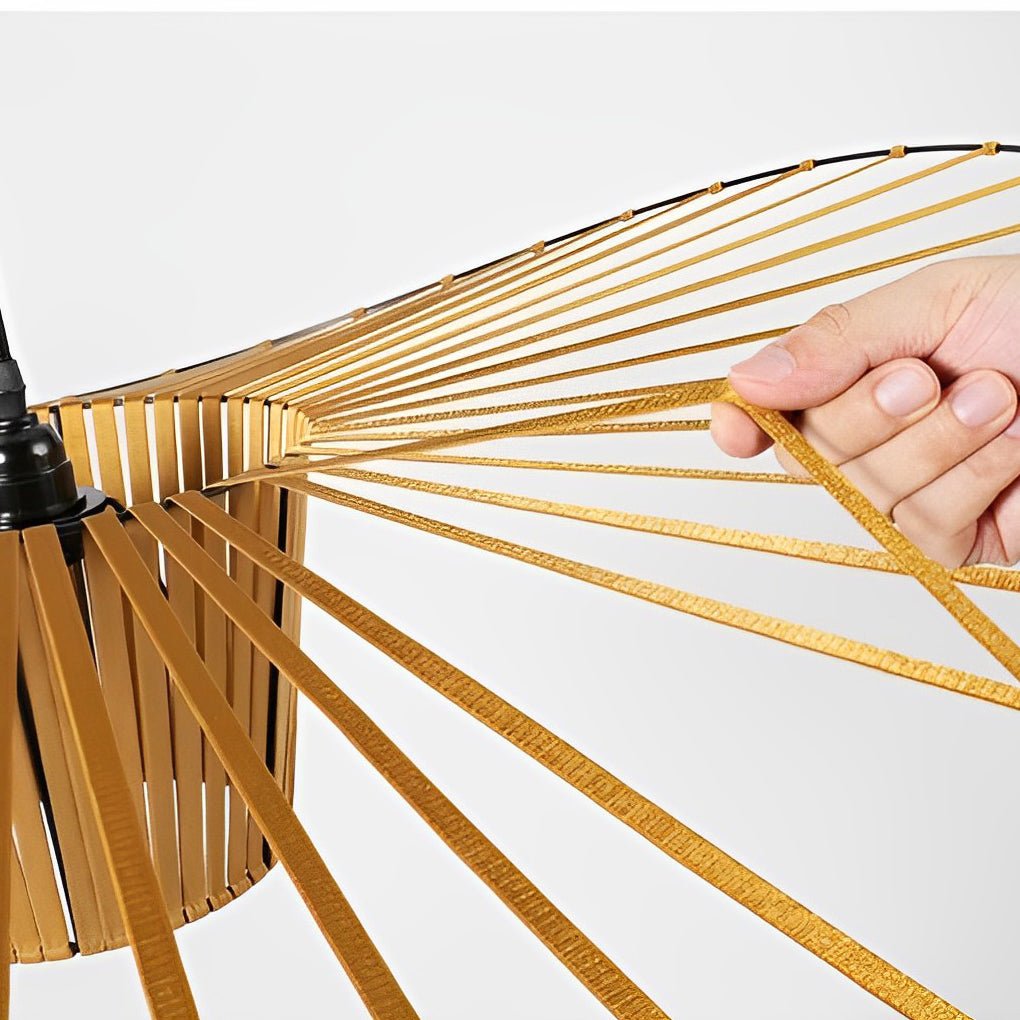 - These pendant lights are crafted from polyurethane stretch fabric and fiberglass rods, supported by a metal load-bearing frame. This construction provides an elegant and flexible feel, suitable for both illumination and decorative purposes.