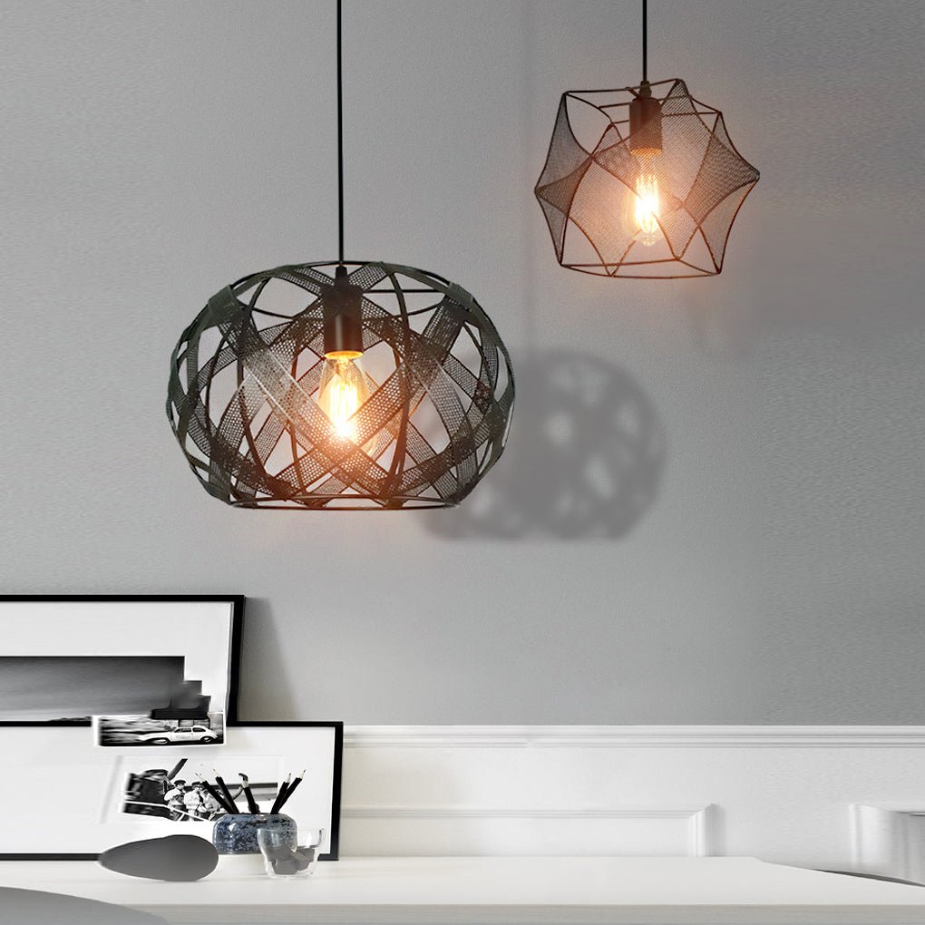 Retro Geometric Iron Mesh Black Industrial Style Chandelier Pendant Lamp