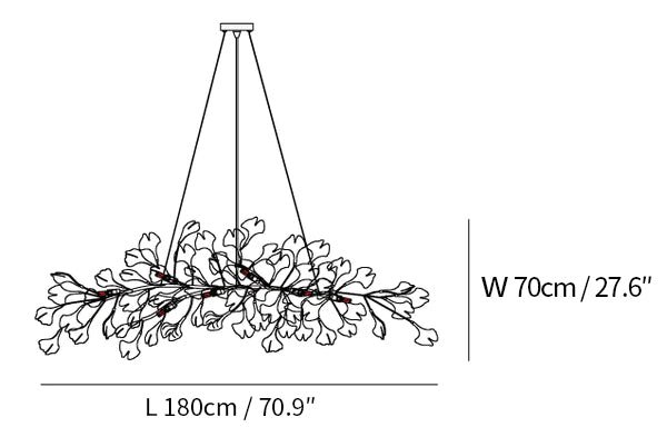 - Size: L 180cm x W 70cm x H 55cm / L 70.9″ x W 27.6″ x H 21.7″ (Uses fifteen G9 bulbs)