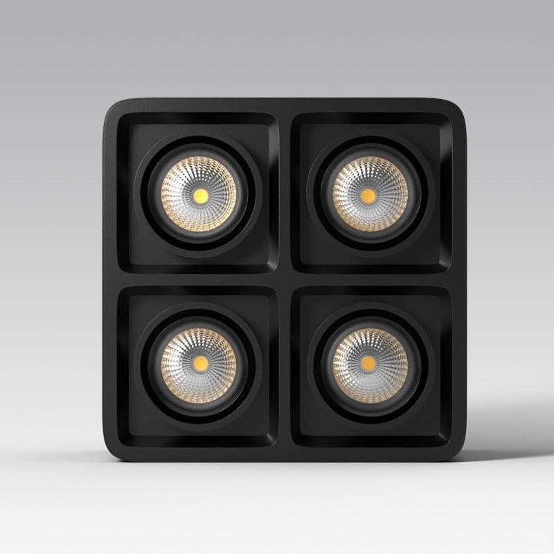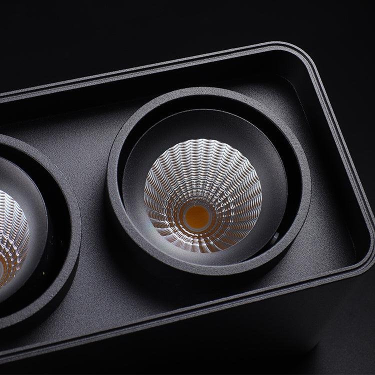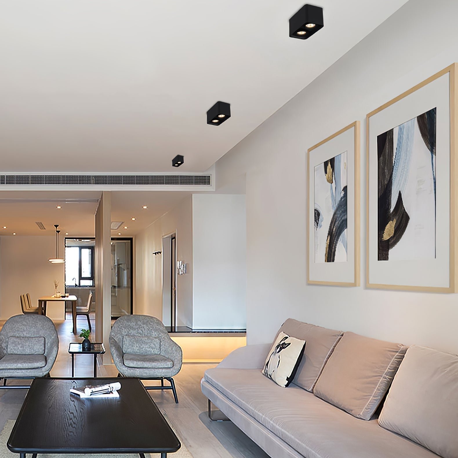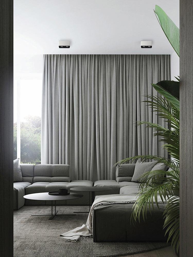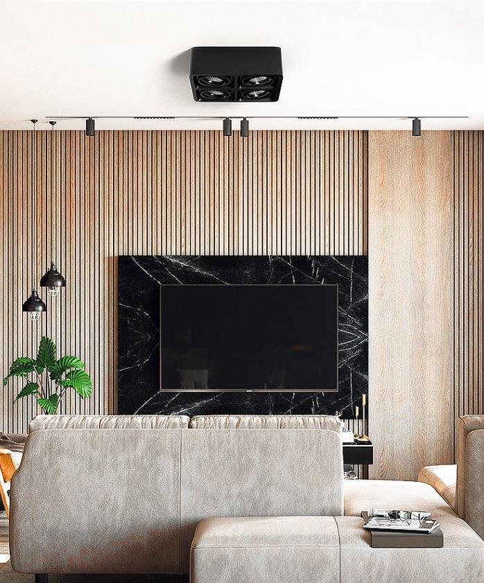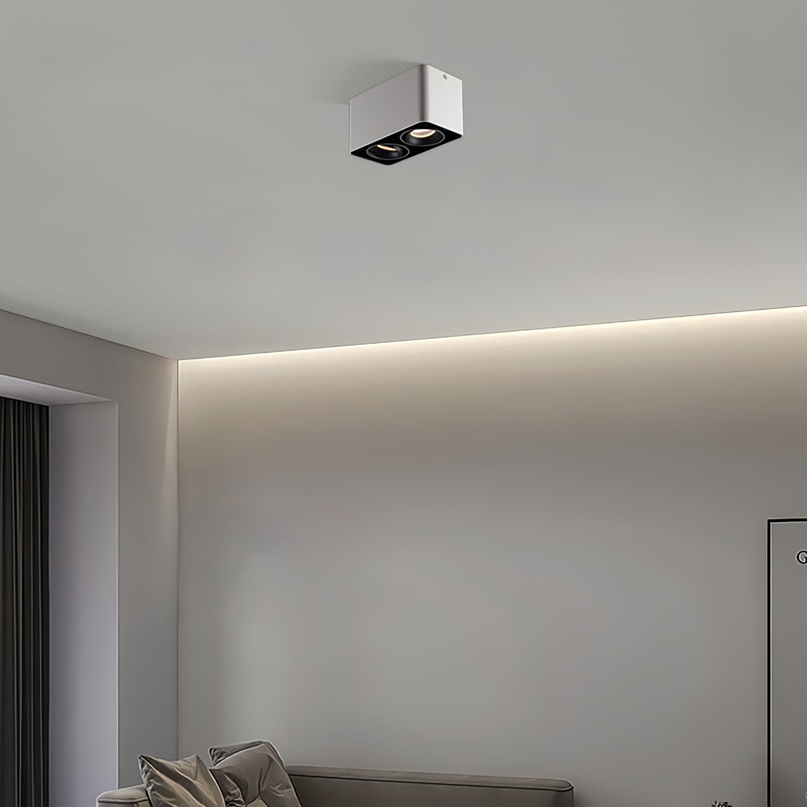 The Giyan surface-mounted light features an angular design crafted from steel, sitting directly on the ceiling to create discreet accents. It integrates into various interior styles, suitable for apartment living spaces or commercial shop lighting.