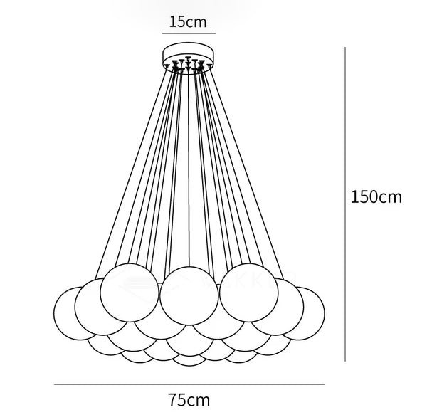 Each glass globe has a 150-millimeter diameter, designed to provide diffused illumination. The fixture’s clean design allows for versatile application in various interior settings.