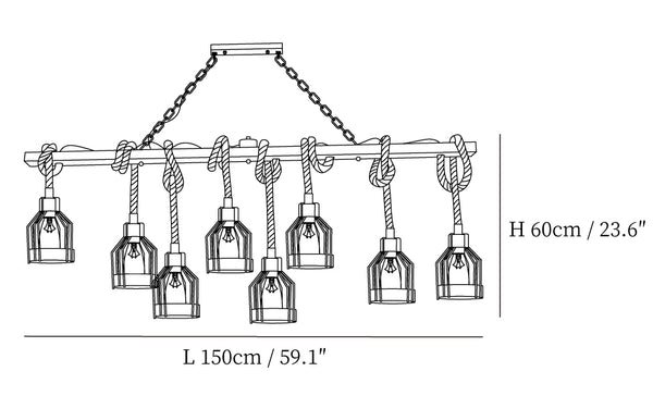 The MINIHOUZZ Twine Industrial Grenade Chandelier combines vintage design with modern aesthetics. Crafted from durable, eco-friendly hemp rope, it features anti-oxidation and anti-rust properties.