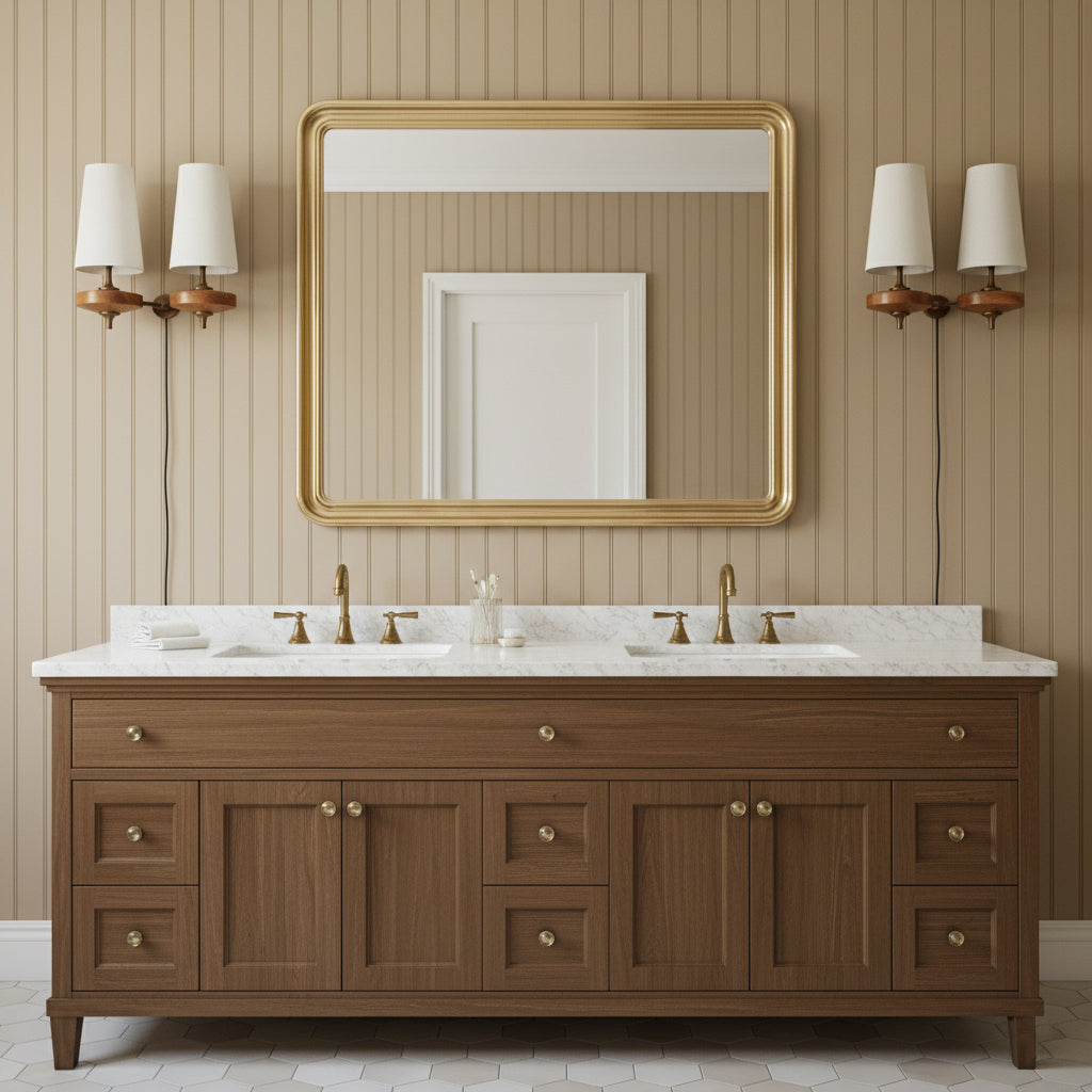 Walnut color, Antique Brass, White, Green, Red.