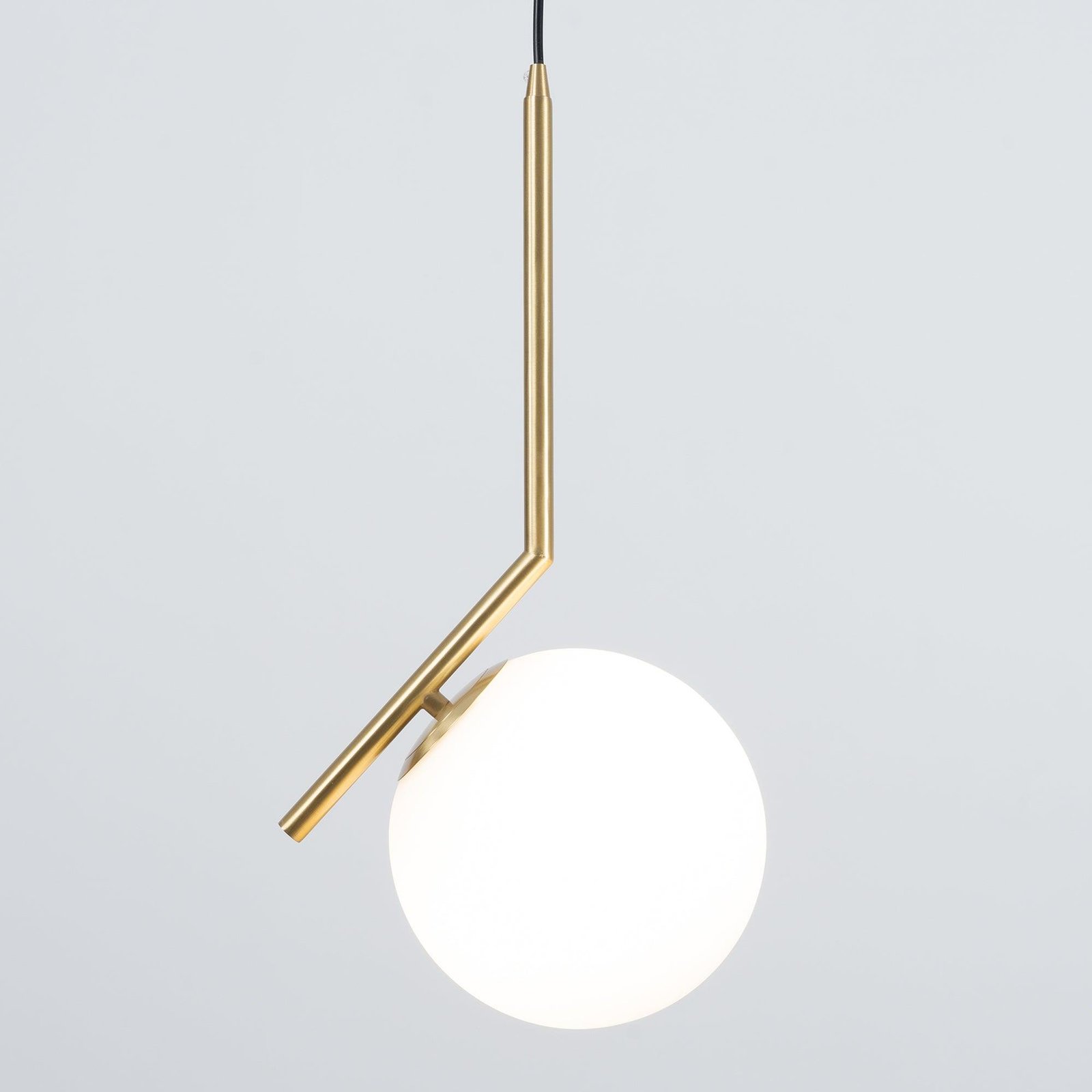 The Equilibrium Pendant Light is a contemporary lighting fixture that emphasizes geometric balance and structural clarity. The design features a sleek silhouette that captures a sense of balance, consisting of a spherical opal glass diffuser positioned against a slender metallic frame to provide diffused illumination for interior spaces.