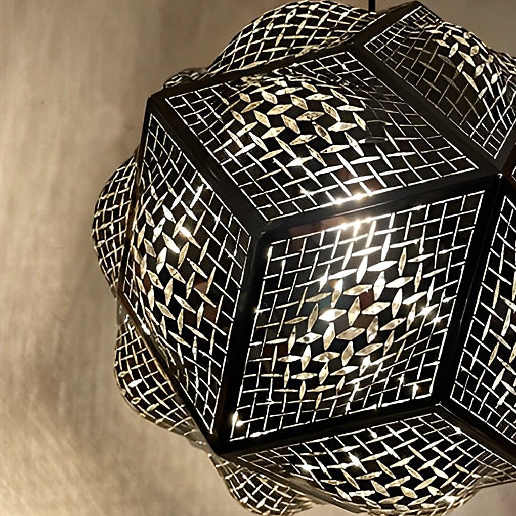 • This chandelier is crafted from stainless steel, processed through electroplating and welding for an exquisite and durable finish. Its hollow design creates a unique light and shadow effect within the room.