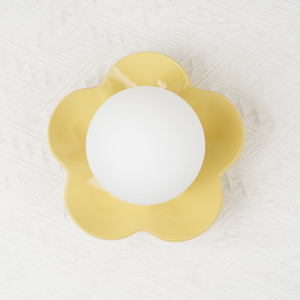 The La Fleur Wall Lamp is a floral-inspired lighting fixture designed for indoor wall or ceiling installation. Constructed from resin and glass, this lamp provides decorative illumination suitable for various interior environments. The design features a sculptural floral base that supports a light-diffusing glass shade.
