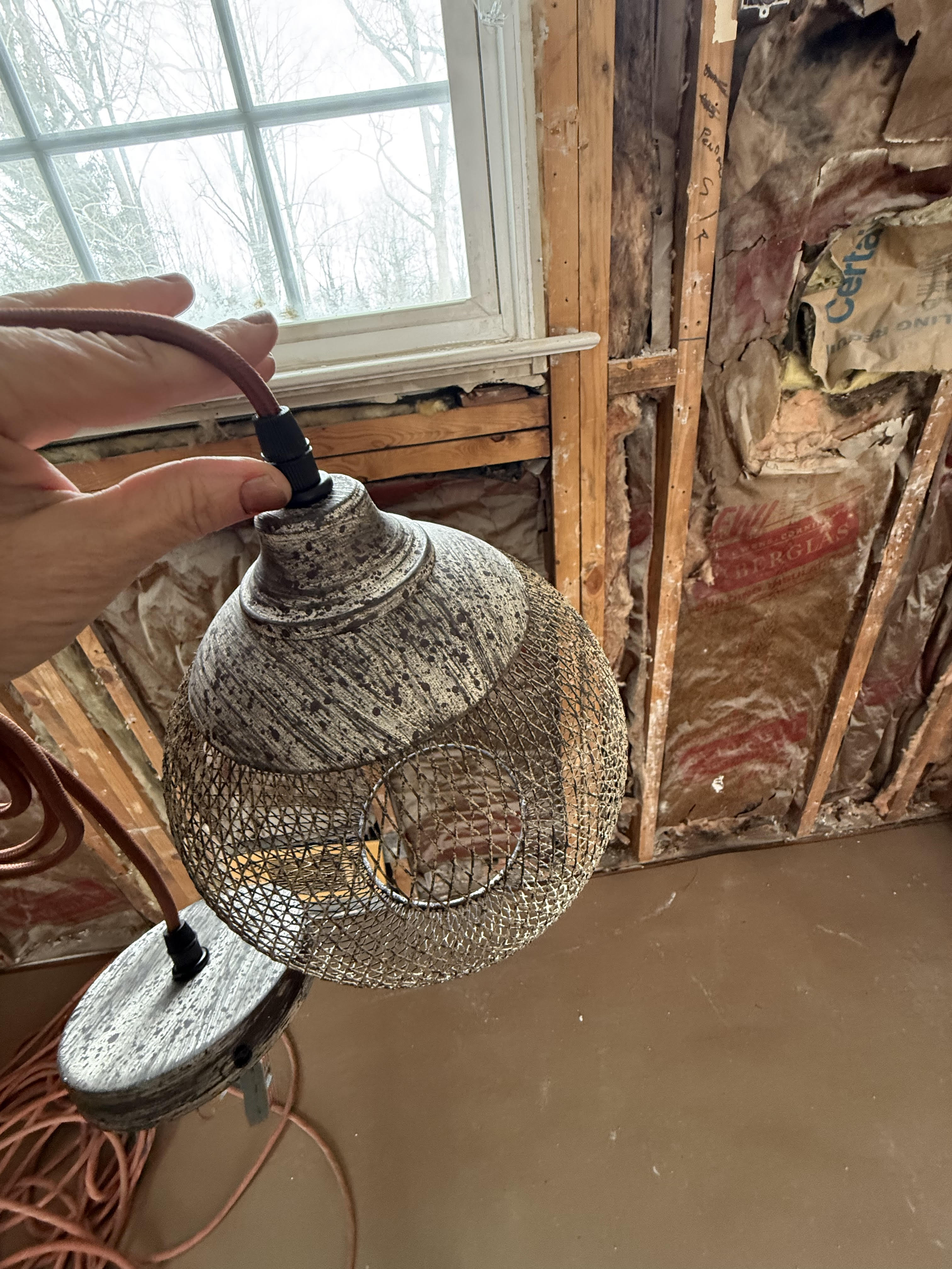 Featuring a statement-making, coffee-colored rust finish, this industrial collection is crafted from iron with a distressed mesh shade that will illuminate your room with rustic charm. Ideal for clustering in small groups or by itself, this lamp adds chic ambiance to any space.